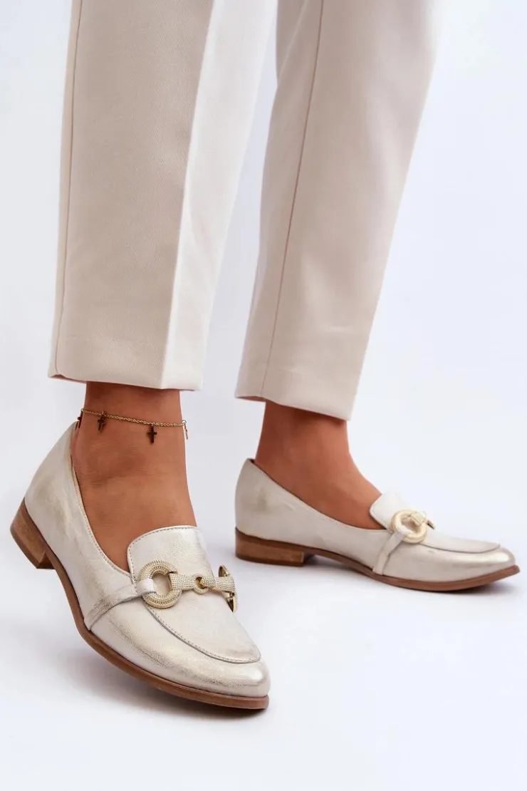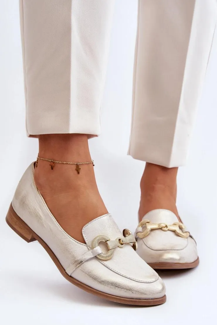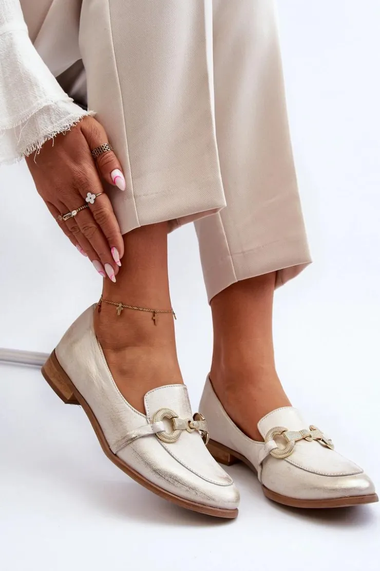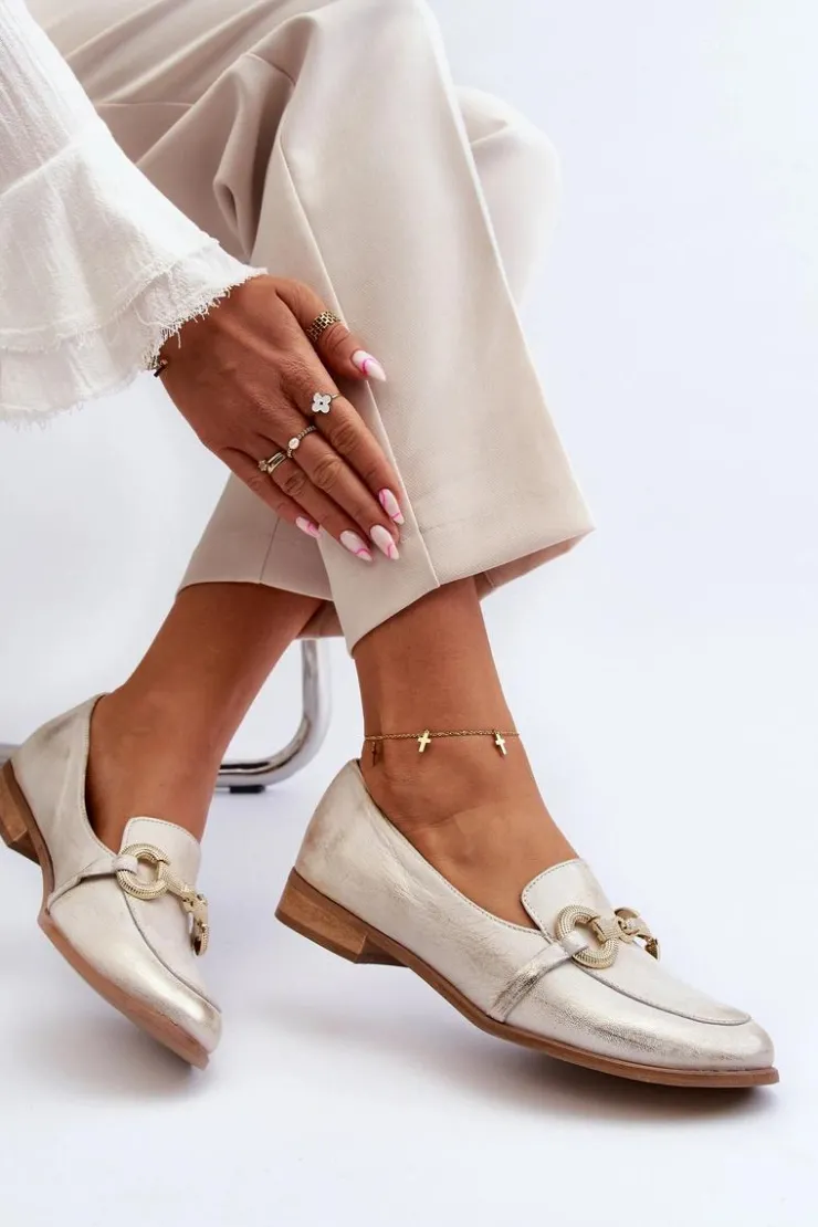 Best Zazoo 2880 Damskie Mokasyny Skórzane Z Ozdobą Złote Złoty