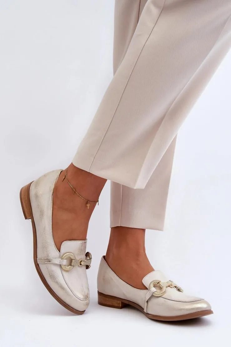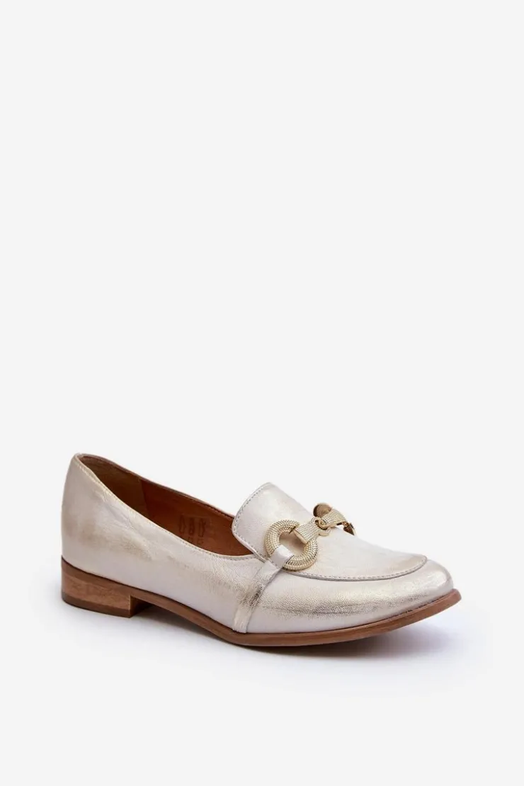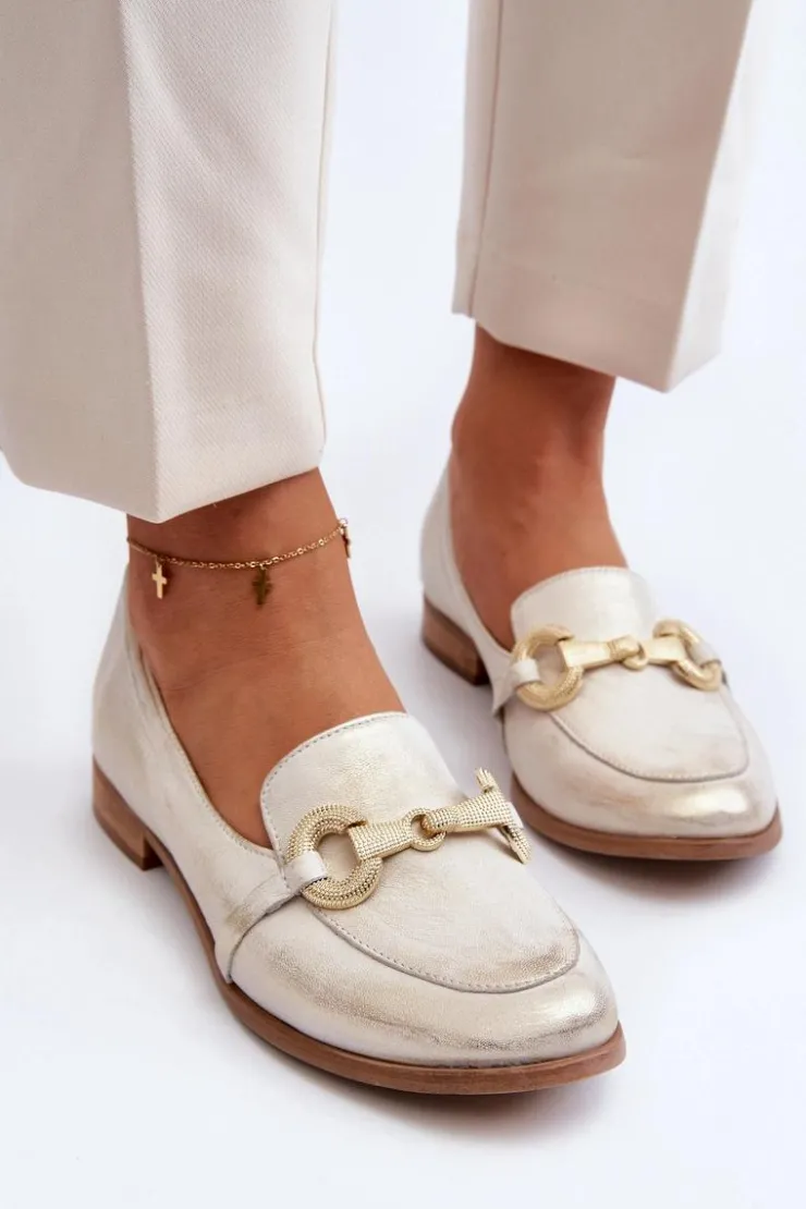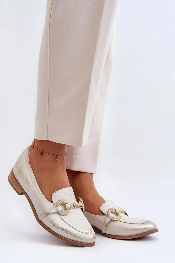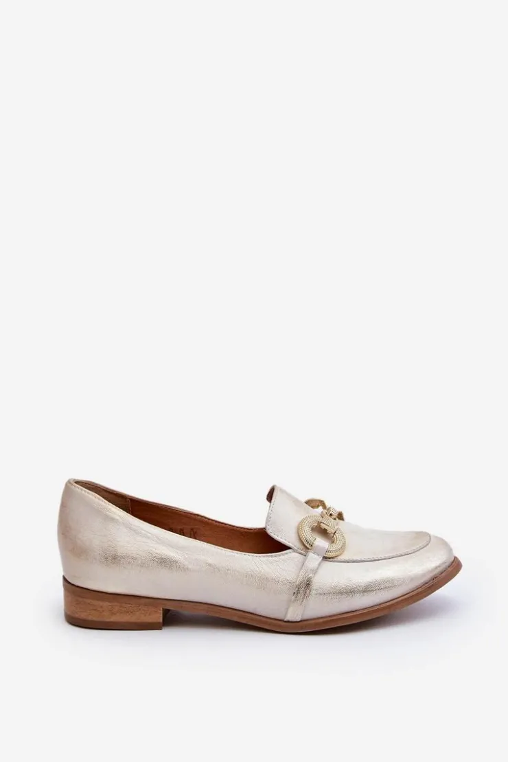 Best Zazoo 2880 Damskie Mokasyny Skórzane Z Ozdobą Złote Złoty