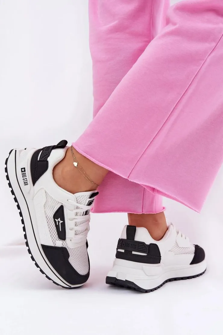 Damskie buty sportowe od marki Big Star stanowią znakomite połączenie stylowego wyglądu i funkcjonalności. Wykonane z ekologicznej skóry oraz materiału tekstylnego, zapewniają trwałość oraz komfort użytkowania. Buty te, umieszczone na platformie, dodają lekkości sylwetce, jednocześnie gwarantując stabilność. Wkładka HI-POLLY SYSTEM, stworzona z materiałów pochodzących z recyklingu, charakteryzuje się wysoką odpornością na ścieranie i odkształcenia, efektywnie pochłania wilgoć i zapewnia doskonałą amortyzację wstrząsów, co sprawia, że są idealnym wyborem na dni pełne aktywności. Przy wyborze rozmiaru prosimy sugerować się tabelą rozmiarów.