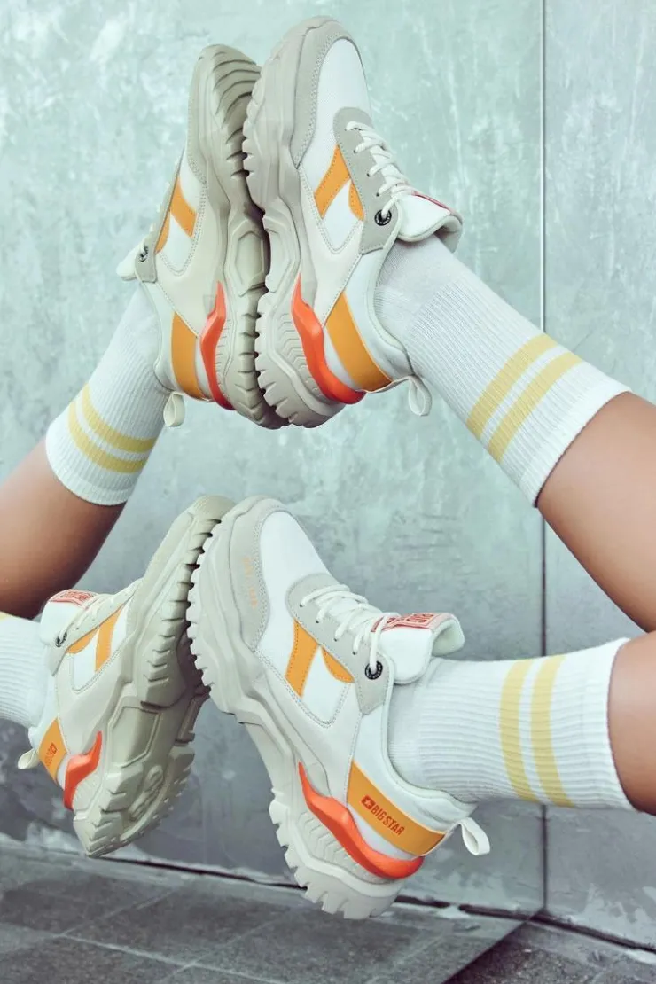 Damskie sportowe buty od polskiej marki Big Star. Cholewka wykonana jest z połączenia przewiewnej tkaniny, eko skóry oraz naturalnego zamszu. Model wiązany na okrągłe sznurowadła. Miękka, materiałowa wkładka. Buty są bardzo lekkie i wygodne w użytkowaniu. Platforma wykonana z tworzywa sztucznego. Sneakersy świetnie sprawdzą się na co dzień do sportowych outfitów. Koniecznie sprawdź całą naszą kolekcję butów BIG STAR. Przy wyborze rozmiaru prosimy sugerować się tabelą rozmiarów.