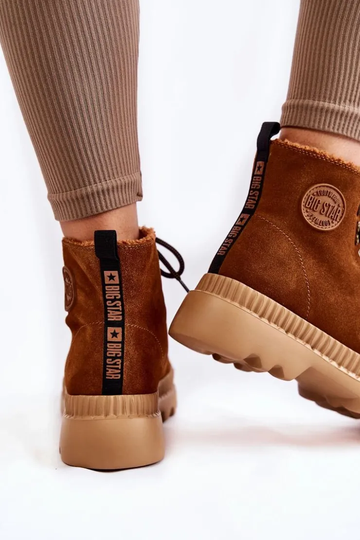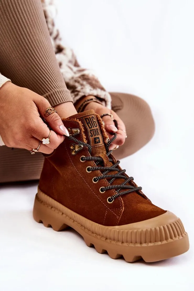 Trapery marki Big Star wykonane są z naturalnego zamszu. Środek butów został ocieplony materiałem. Masywna podeszwa oraz płaski obcas sprawiają, że botki są stabilne podczas użytkowania na nierównej nawierzchni. Model z klasycznym sznurowaniem z przodu. Dodatkowo nosek oraz zapiętek są usztywniane. Koniecznie sprawdź całą kolekcję tej marki! Przy wyborze rozmiaru prosimy sugerować się tabelą rozmiarów.