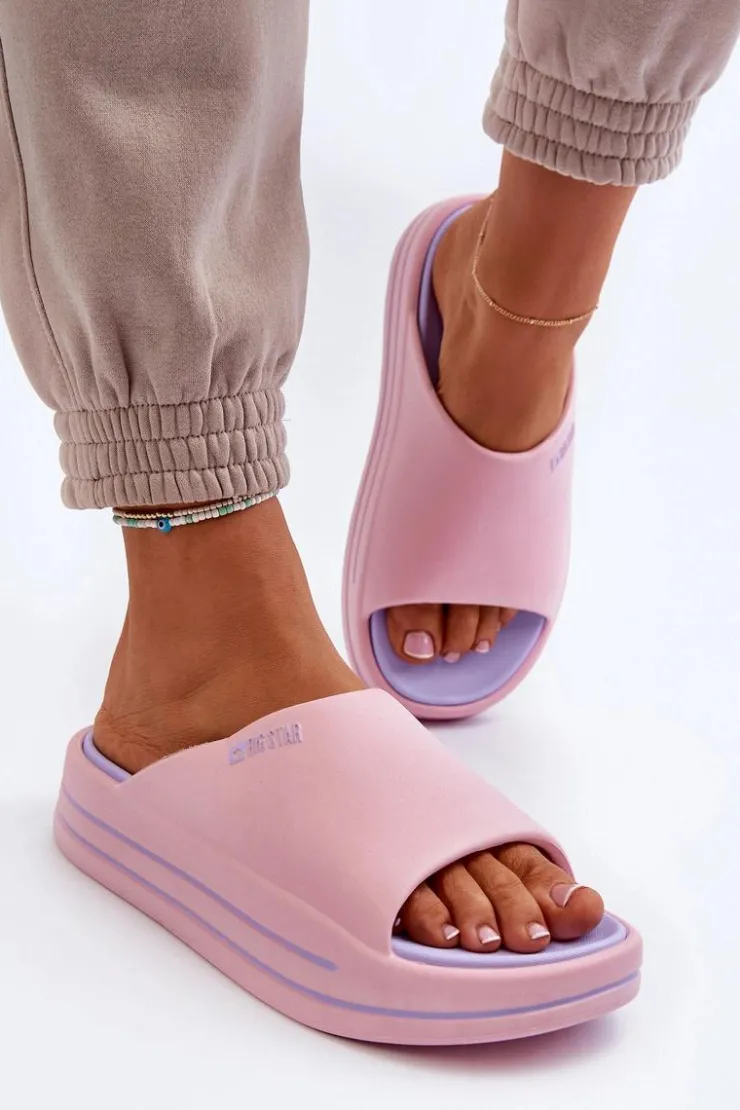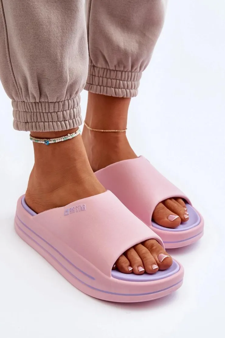 Damskie klapki od marki Big Star wykonane z miękkiej i przyjemnej w dotyku pianki. Wysoka podeszwa dodaje kilka centymetrów wzrostu, co sprawia, że są nie tylko wygodne, ale także idealnie na letnie dni. Doskonałe zarówno na plażę, jak i na codzienne wyjścia, pasują do różnorodnych casualowych stylizacji, podkreślając swobodny charakter letnich dni. Przy wyborze rozmiaru prosimy sugerować się tabelą rozmiarów.