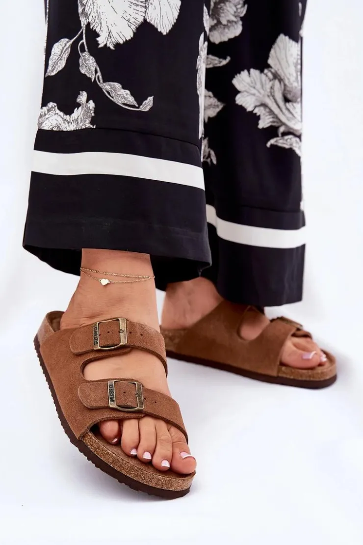 Klapki damskie z naturalnego zamszu od marki Big Star. Osadzone na platformie, to połączenie komfortu i stylu. Regulowane paski z klamrami pozwalają na idealne dopasowanie do stopy, zapewniając wygodę przez cały dzień. Profilowana wkładka dodatkowo zwiększa komfort. Te klapki będą doskonałym wyborem na co dzień, idealnie komponując się z letnimi stylizacjami. Przy wyborze rozmiaru prosimy sugerować się tabelą rozmiarów.