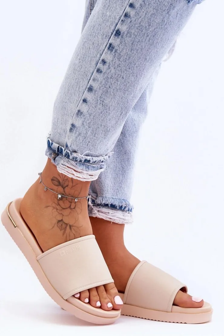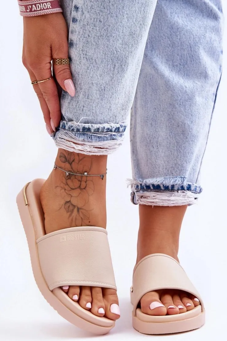 Big Star Shoes Klapki Damskie Big Star|Klapki Na Platformie*Damskie Klapki Na Platformie Big Star LL274933 Beżowe