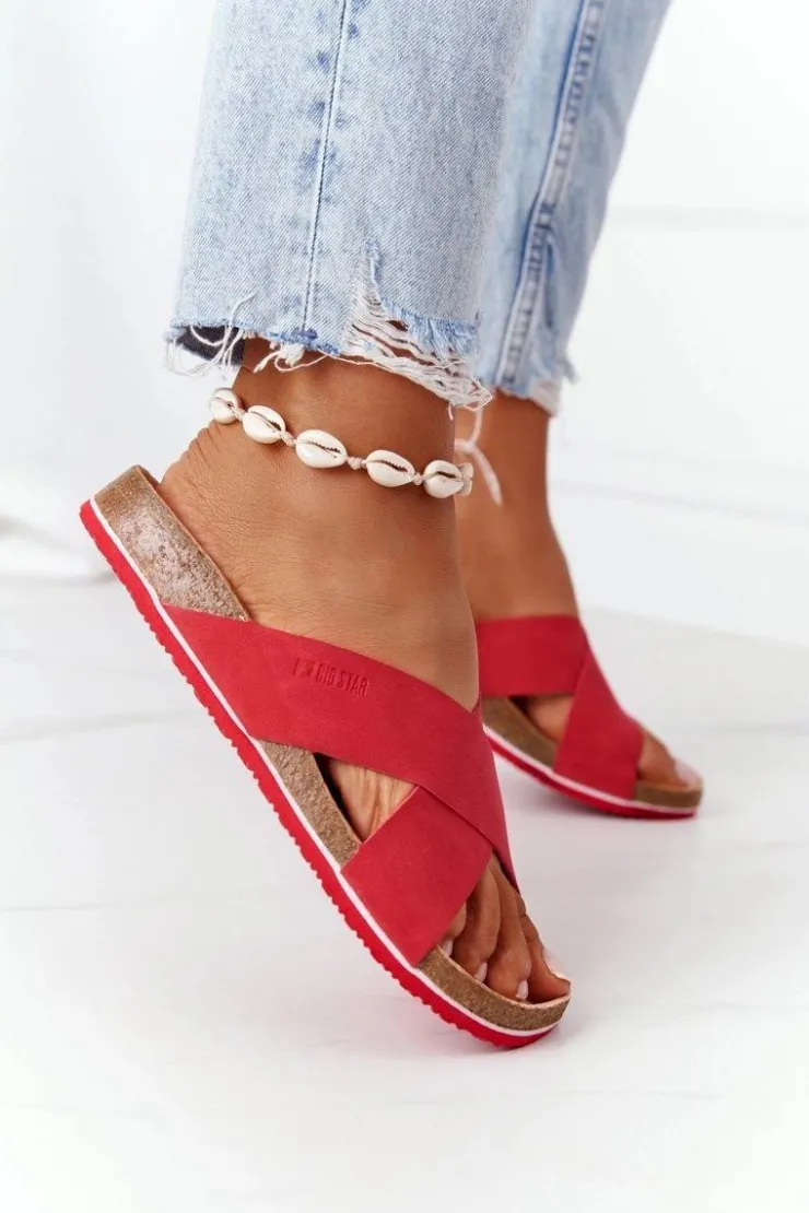 Klapki na korkowej podeszwie od polskiej marki BIG STAR. Buty posiadają profilowaną wkładkę ze skóry naturalnej, która zagwarantuje komfort. Modny fason, który pasuje do wszystkiego! Przy wyborze rozmiaru prosimy sugerować się tabelą rozmiarów.