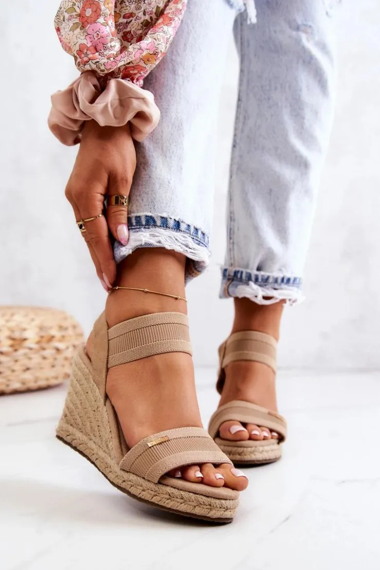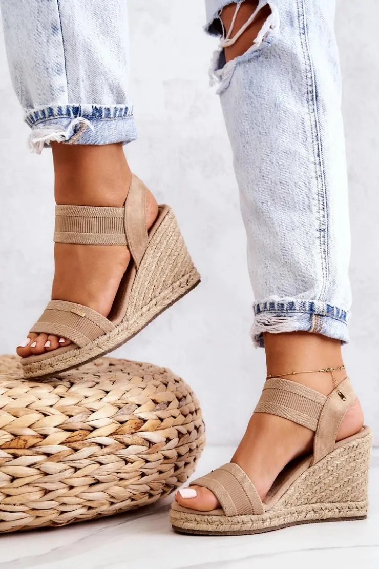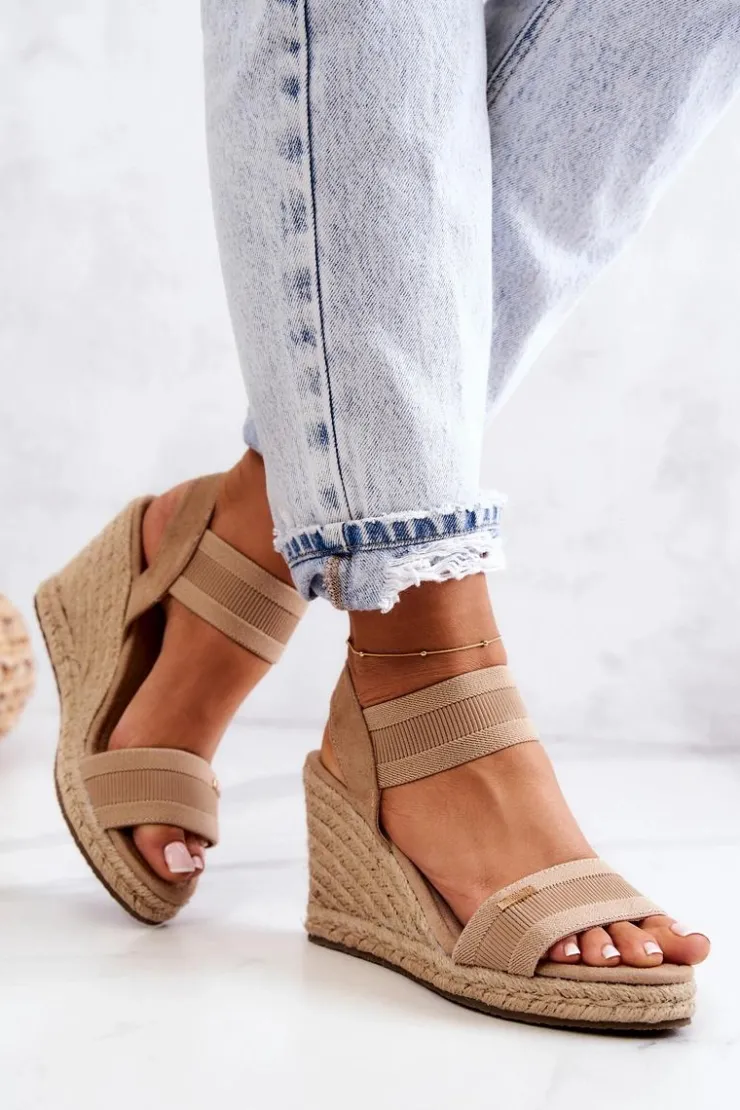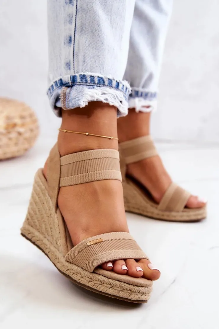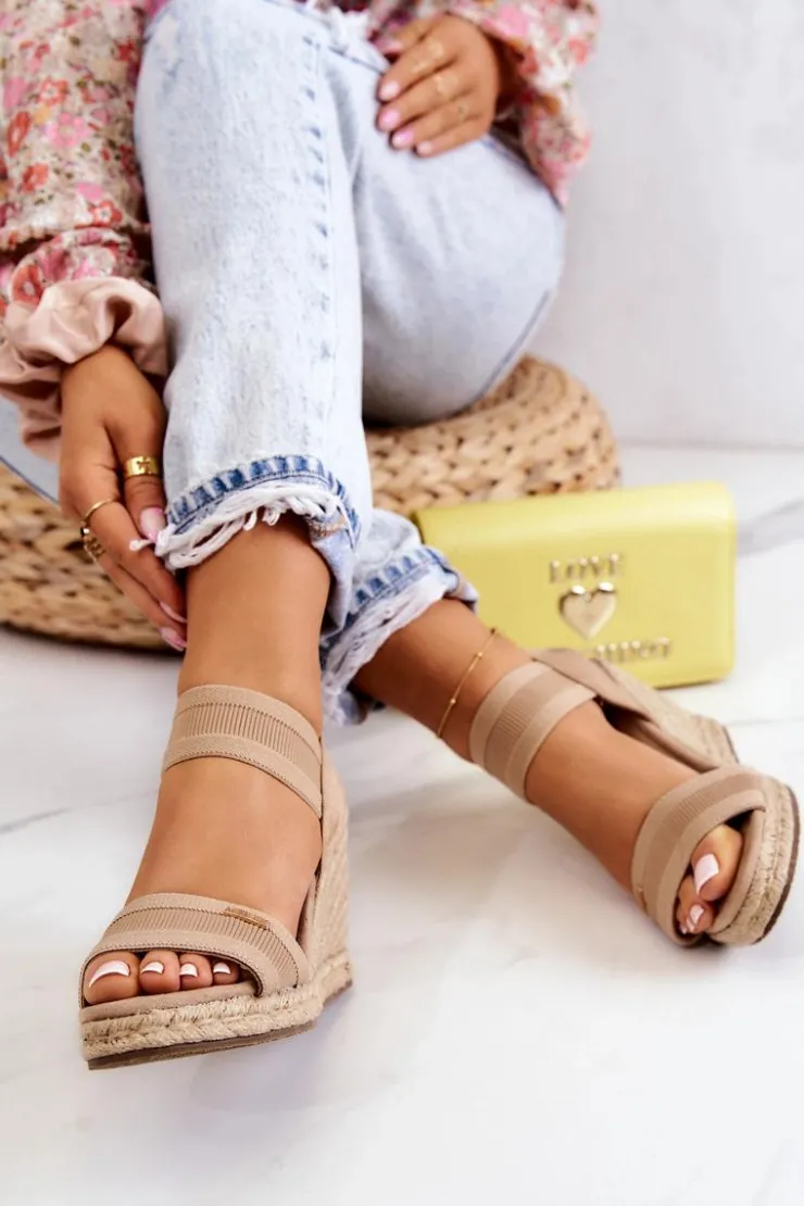 Big Star Shoes Sandały Big Star|Sandały Na Koturnie*Damskie Sandały Na Koturnie Big Star JJ274978 Beżowe