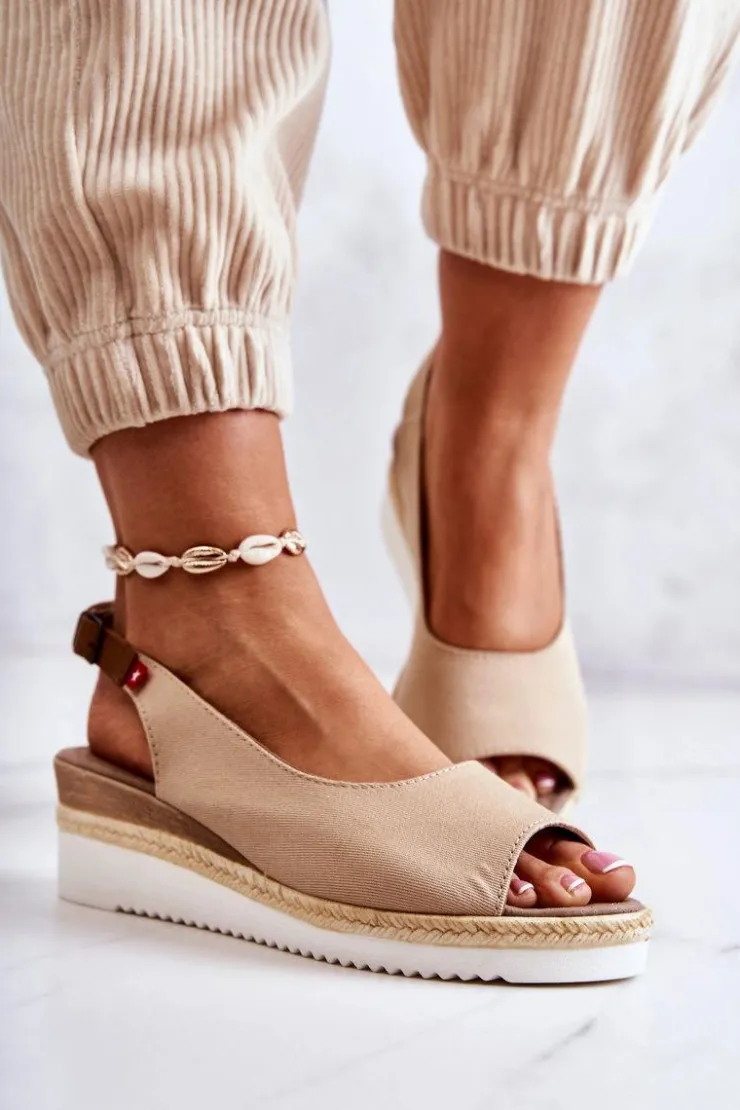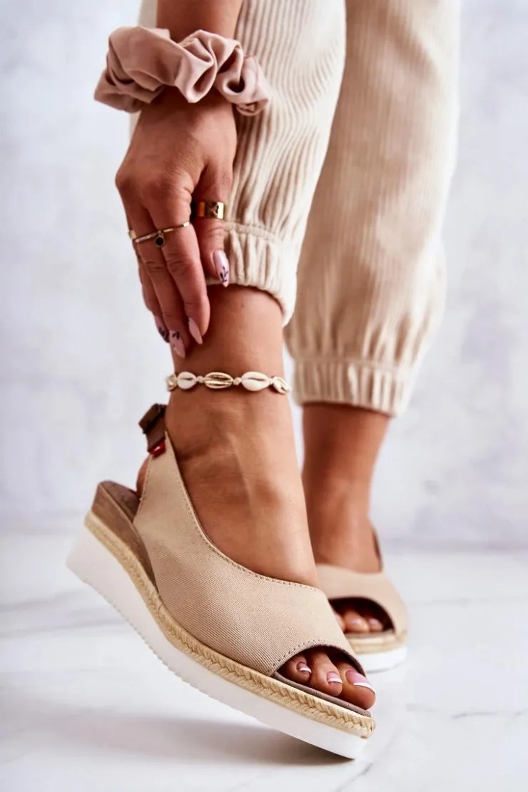 Damskie sandałki wykonane z materiału tekstylnego. Posiadają regulowany pasek z dodatkiem eko skóry zapinany wokół kostki na sprzączkę. Wkładka miękka, wykonana z naturalnej skóry. Buty osadzone na niskim koturnie i delikatnej platformie. Model, który będzie pasować do wielu stylizacji. Idealne na lato, przewiewne i wygodne. Koniecznie sprawdź także pozostałe sandały marki Big Star dostępne w naszej ofercie! Podczas wyboru rozmiaru prosimy sugerować się tabelą rozmiarów.