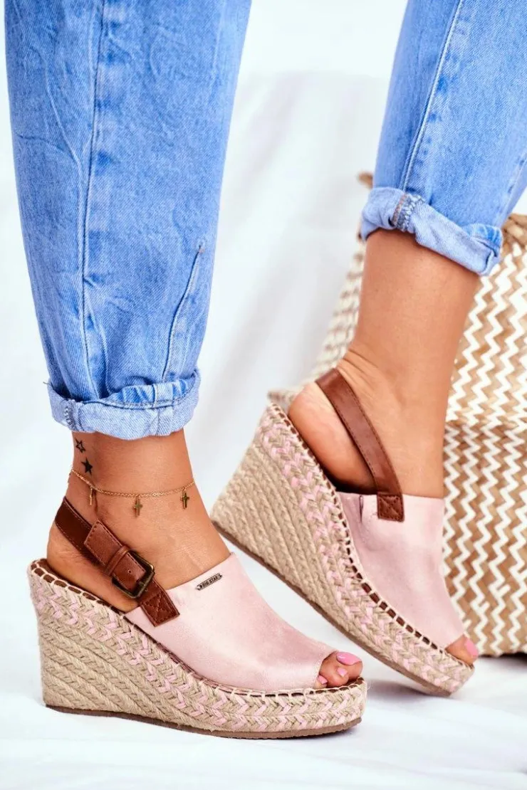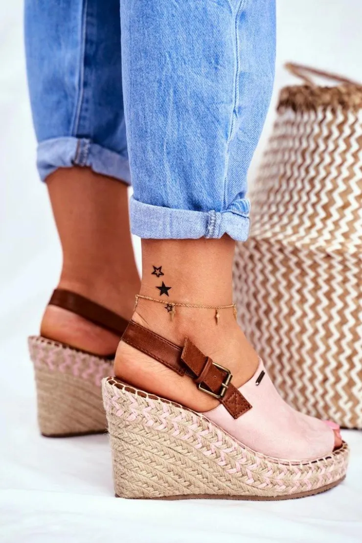 Big Star Shoes Sandały Big Star|Sandały Na Koturnie*Sandały Damskie Na Koturnie Big Star Różowe FF274984