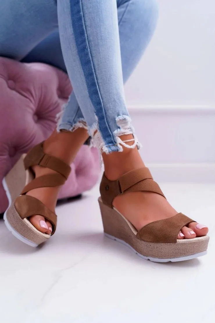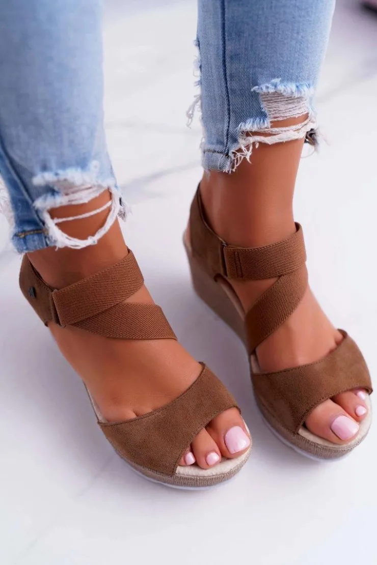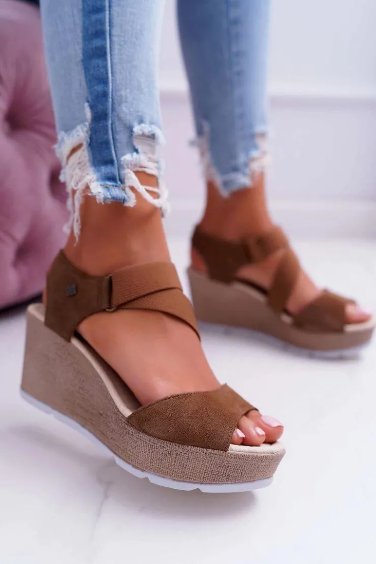 Big Star Shoes Sandały Big Star|Sandały Na Koturnie*Sandały Damskie Na Koturnie Big Star Zamszowe Brązowe DD276035