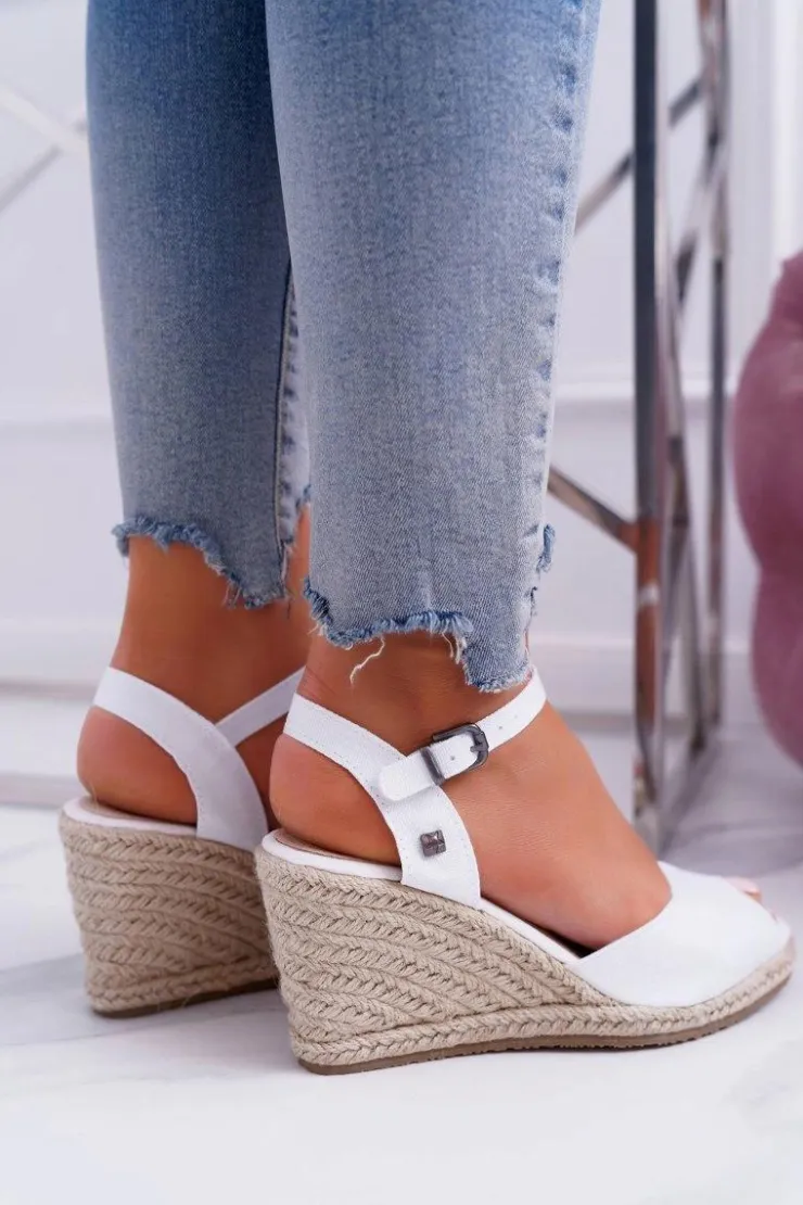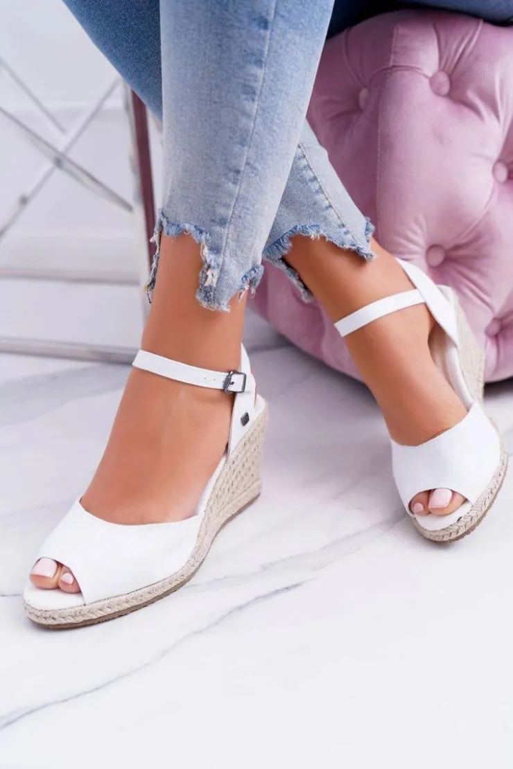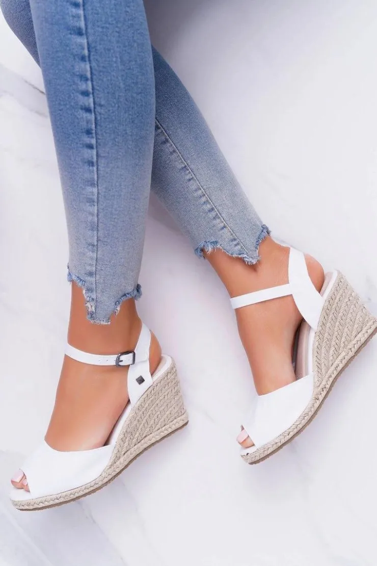 Big Star Shoes Sandały Big Star|Sandały Na Koturnie*Sandały Damskie Na Plecionej Koturnie Big Star Białe DD274A231