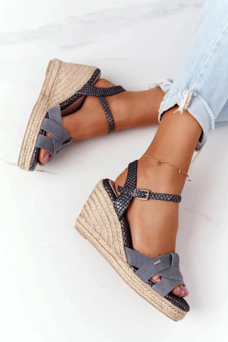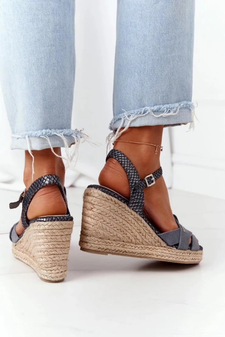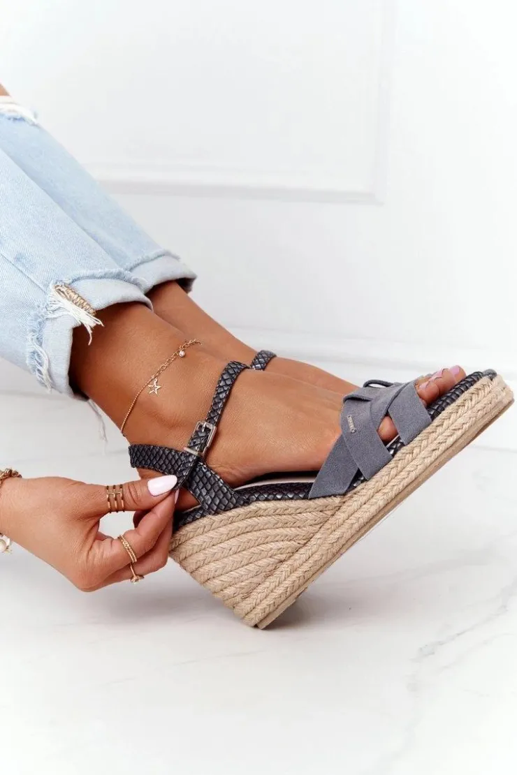 Big Star Shoes Sandały Big Star|Sandały Na Koturnie*Skórzane Sandały Na Koturnie Big Star HH274378 Srebrne