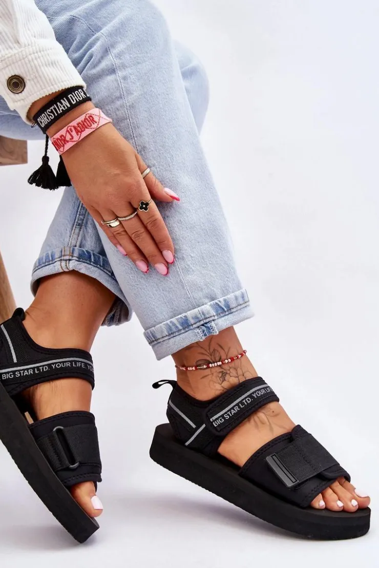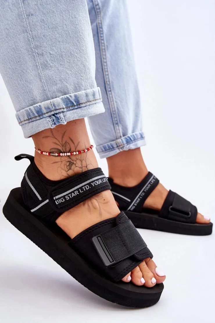 Klasyczne, damskie sandały od marki Big Star! Model ten posiada zapinanie na rzepy. Sandały osadzono na masywnej platformie. Wygoda oraz komfort gwarantowane. Sandałki z wierzchu zostały wykonane z materiału tekstylnego oraz tworzywa sztucznego. Koniecznie sprawdź pozostałe modele sandałek od marki Big Star! Przy wyborze rozmiaru prosimy sugerować się tabelą rozmiarów.