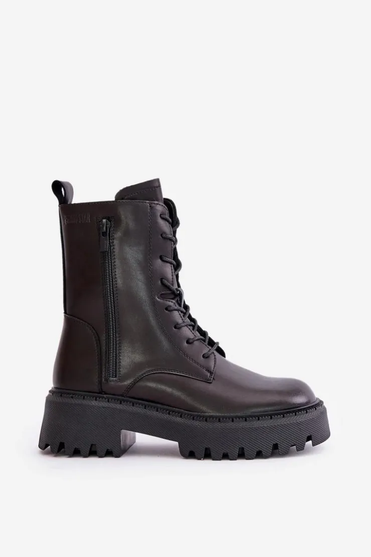 Botki workery od marki Big Star wykonane z naturalnej skóry to stylowa i wygodna opcja na chłodniejsze dni. Osadzone na płaskim obcasie. Zaokrąglone noski zapewniają komfort oraz klasyczny wygląd. Model zapinany na zamek, a dodatkowy ozdobny zamek na cholewce dodaje charakteru. Wnętrze ocieplane kocem obuwniczym gwarantuje ciepło i wygodę podczas noszenia. Idealne na co dzień, łączące styl i funkcjonalność. Przy wyborze rozmiaru prosimy sugerować się tabelą rozmiarów.
