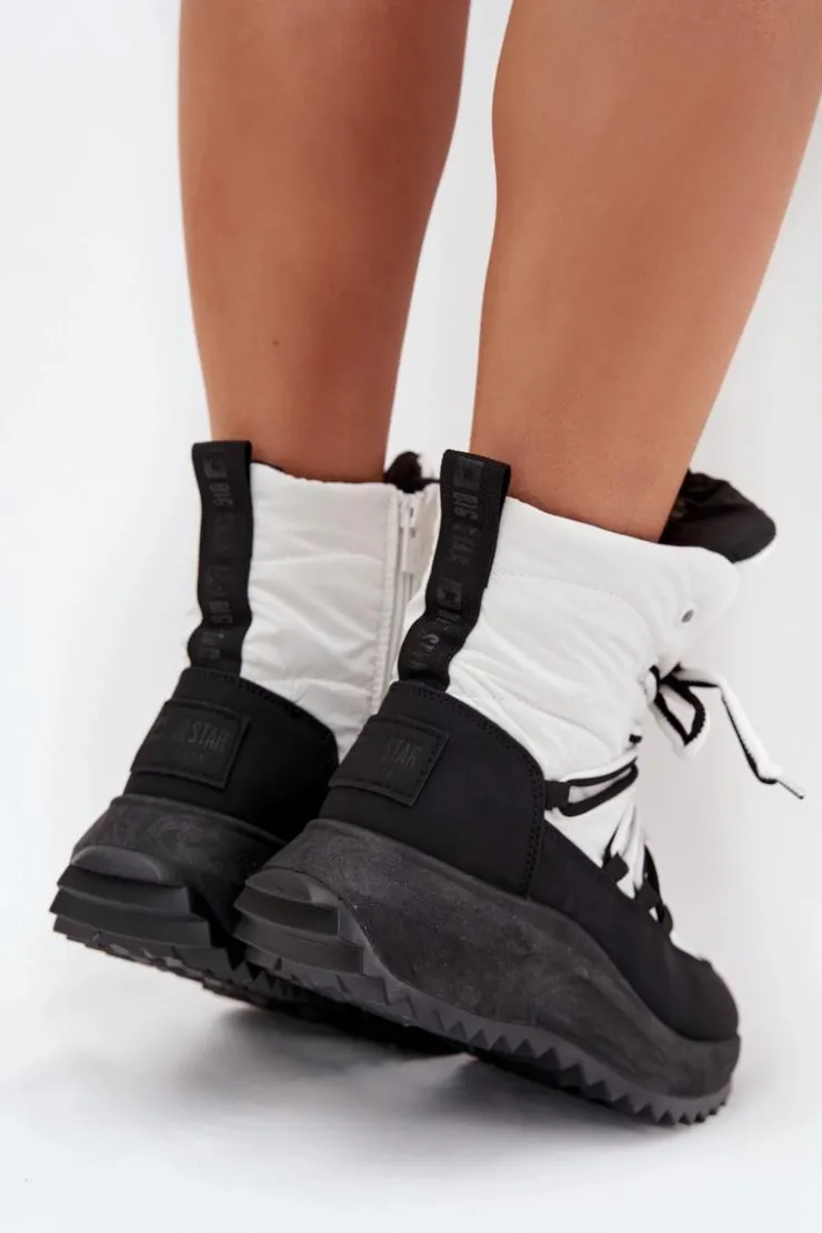 Ciepłe śniegowce od Big Star to idealny wybór na zimowe dni, zapewniający ciepło i wygodę w każdej sytuacji. Gruba podeszwa świetnie izoluje od zimna, a odpowiednia ocieplenie skutecznie chroni stopy, nawet podczas mroźnych dni. Zapinane na zamek i sznurowane, pozwalają na dopasowanie do stopy, gwarantując komfort. Stylowe i funkcjonalne, sprawdzą się doskonale zarówno w codziennych stylizacjach, jak i w trudniejszych warunkach pogodowych. Przy wyborze rozmiaru prosimy sugerować się tabelą rozmiarów.