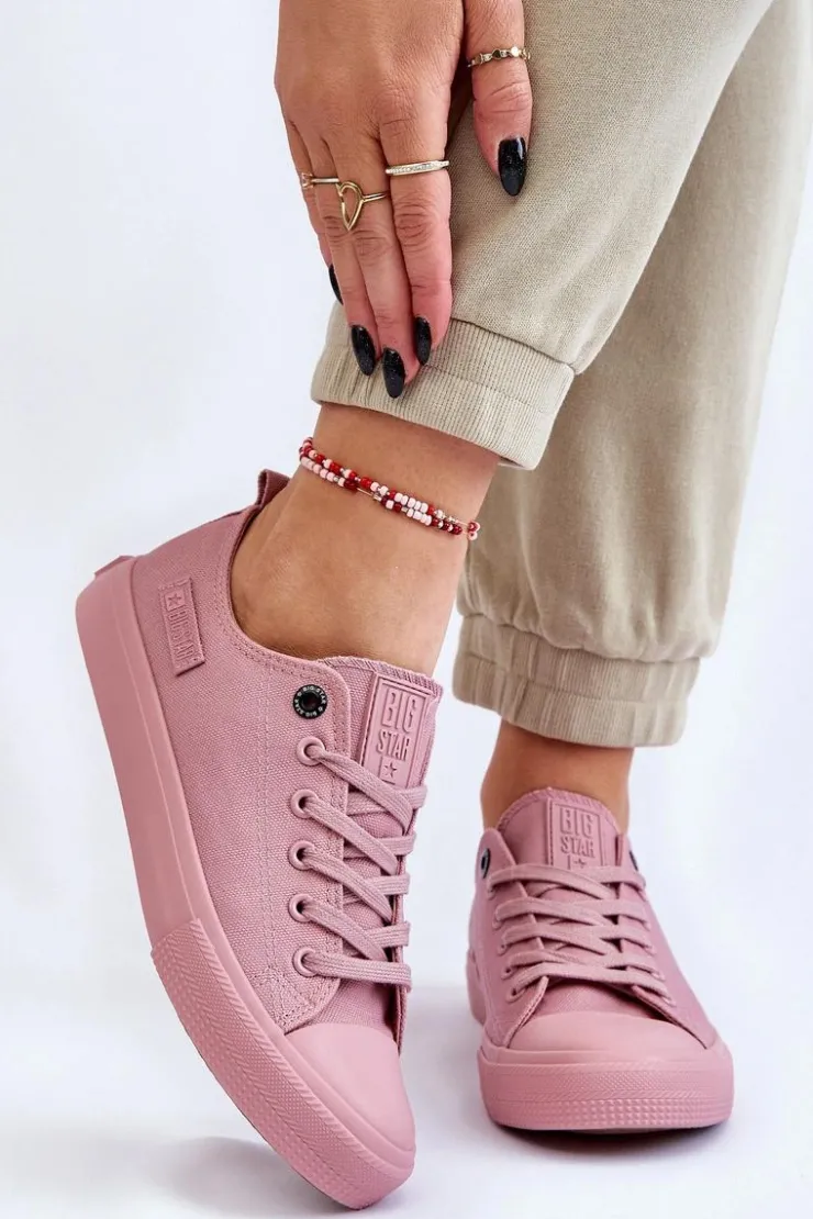 Damskie trampki polskiej marki Big Star. Klasyczny model pasuje do wielu stylizacji. Buty dobrze dopasowują się do kształtu stopy. Posiadają miękką, materiałową wkładkę oraz antypoślizgową podeszwę wykonaną z gumowego tworzywa. Zapiętek w tych trampkach jest usztywniany. Koniecznie sprawdź całą naszą kolekcję butów BIG STAR.Przy wyborze rozmiaru prosimy sugerować się tabelą rozmiarów.