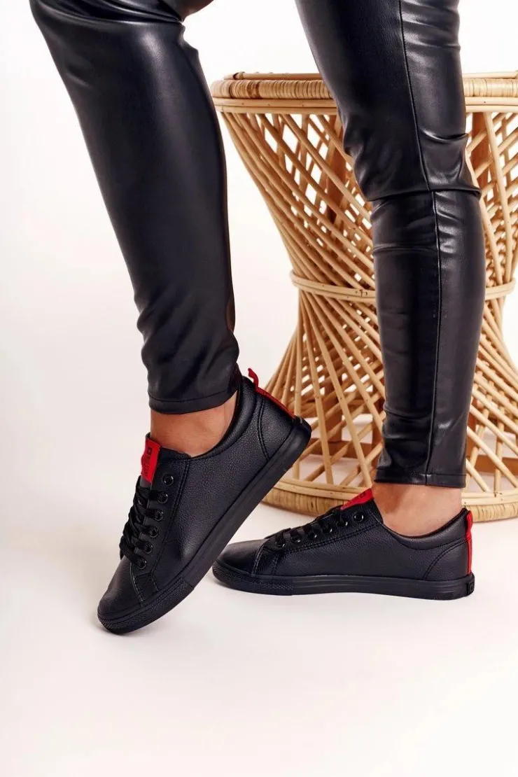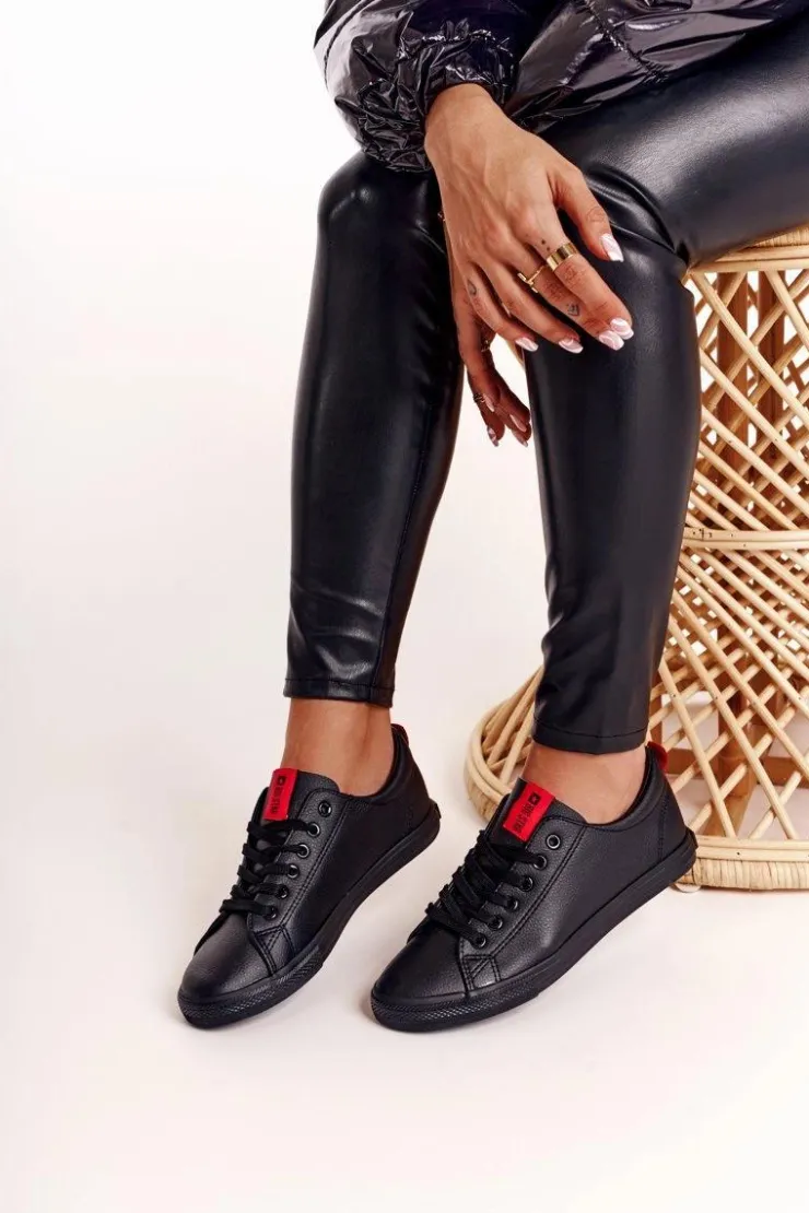 Big Star Shoes Trampki Damskie Big Star|Trampki Damskie Niskie*Damskie Skórzane Tenisówki Z Tasiemką BIG STAR DD274687 Czarne