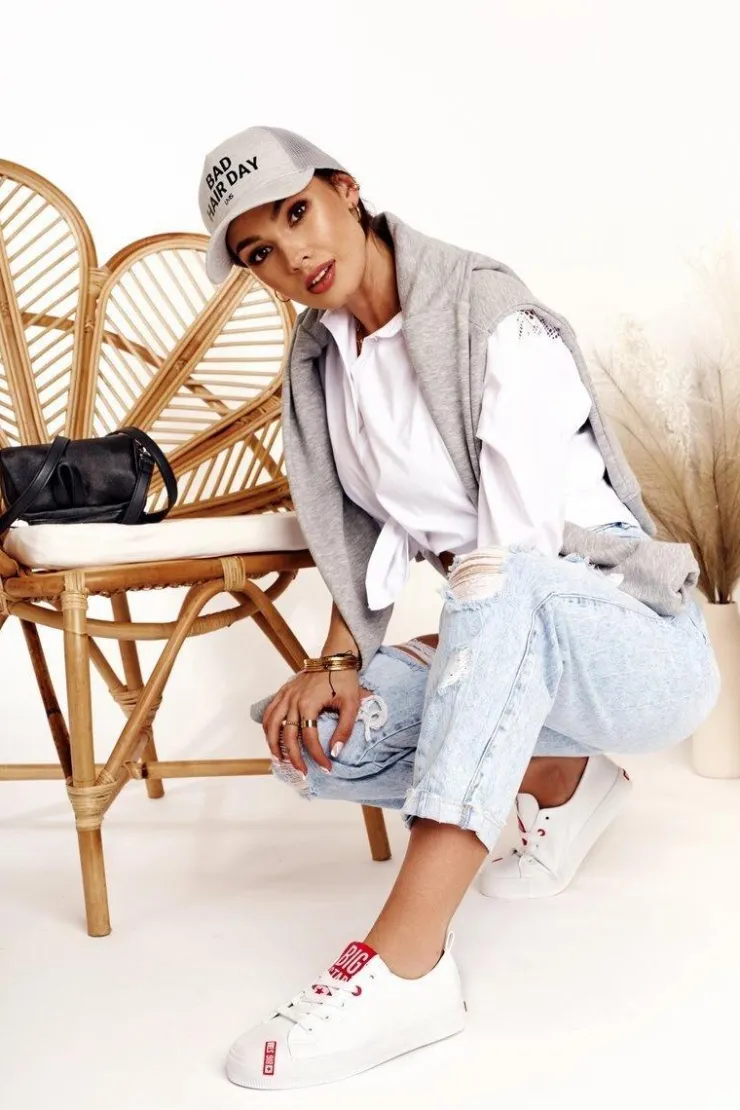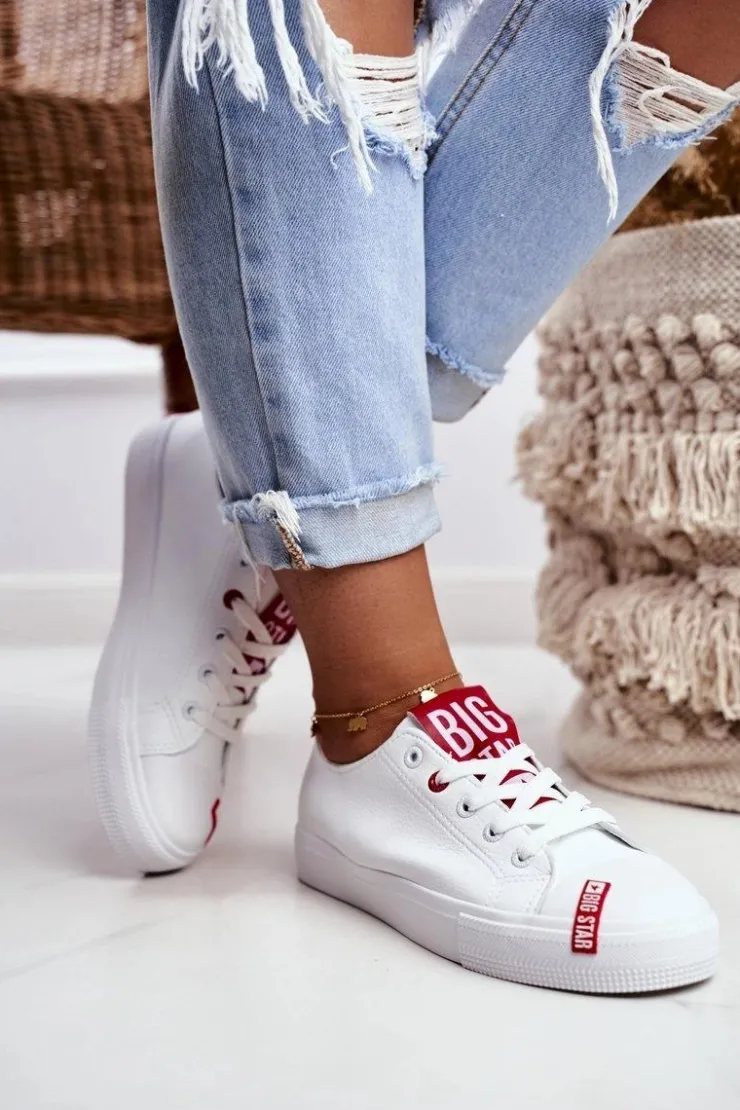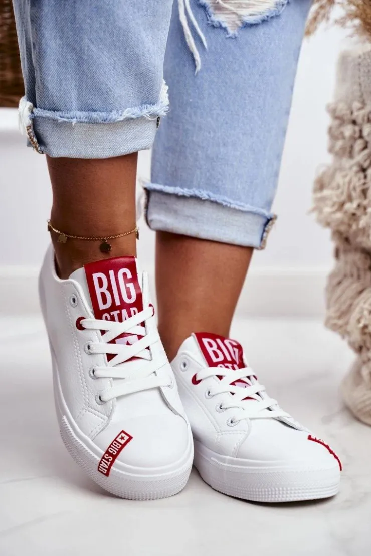 Big Star Shoes Trampki Damskie Big Star|Trampki Damskie Niskie*Damskie Skórzane Trampki BIG STAR EE274302 Białe
