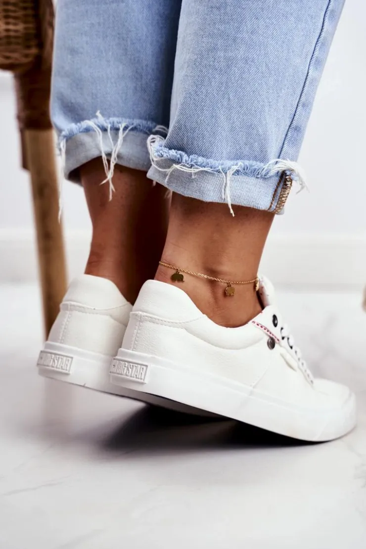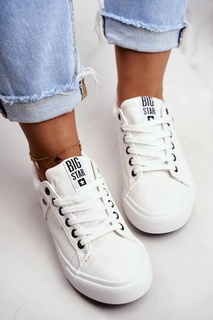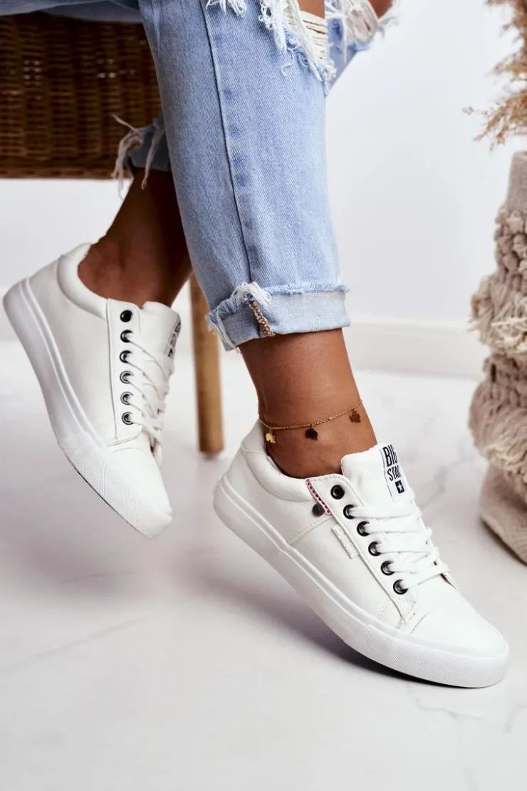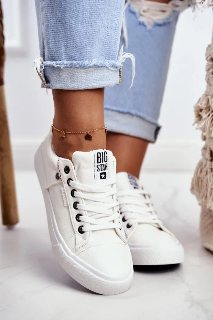 Damskie trampki od polskiej marki BIG STAR. Klasyczna forma pasuje do wielu stylizacji. Buty dobrze dopasowują się do kształtu stopy, posiadają miękką, materiałową wkładkę. Wykonane są z wysokiej jakości eko skóry. Koniecznie sprawdź całą naszą kolekcję butów BIG STAR. Przy wyborze rozmiaru prosimy sugerować się tabelą rozmiarów.
