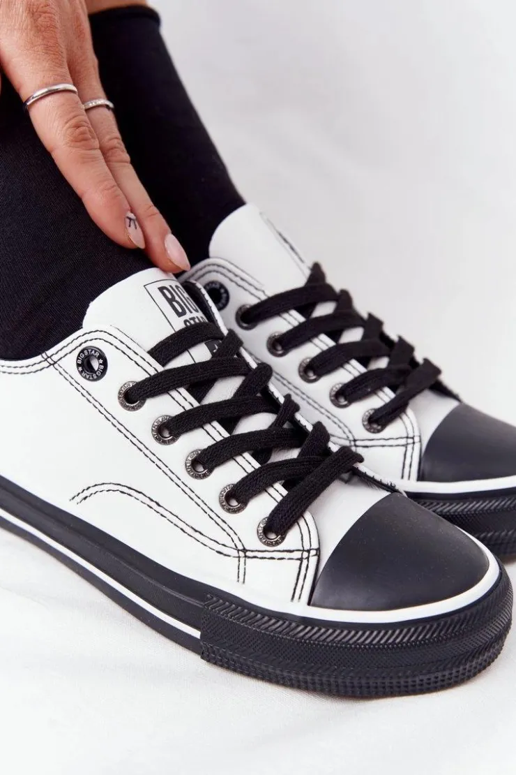 Damskie trampki polskiej marki BIG STAR. Klasyczna forma pasuje do wielu stylizacji. Buty dobrze dopasowują się do kształtu stopy, posiadają miękką, materiałową wkładkę oraz antypoślizgową podeszwę. Wykonane są z wysokiej jakości eko skóry. Koniecznie sprawdź całą naszą kolekcję butów BIG STAR. Przy wyborze rozmiaru prosimy sugerować się tabelą rozmiarów.