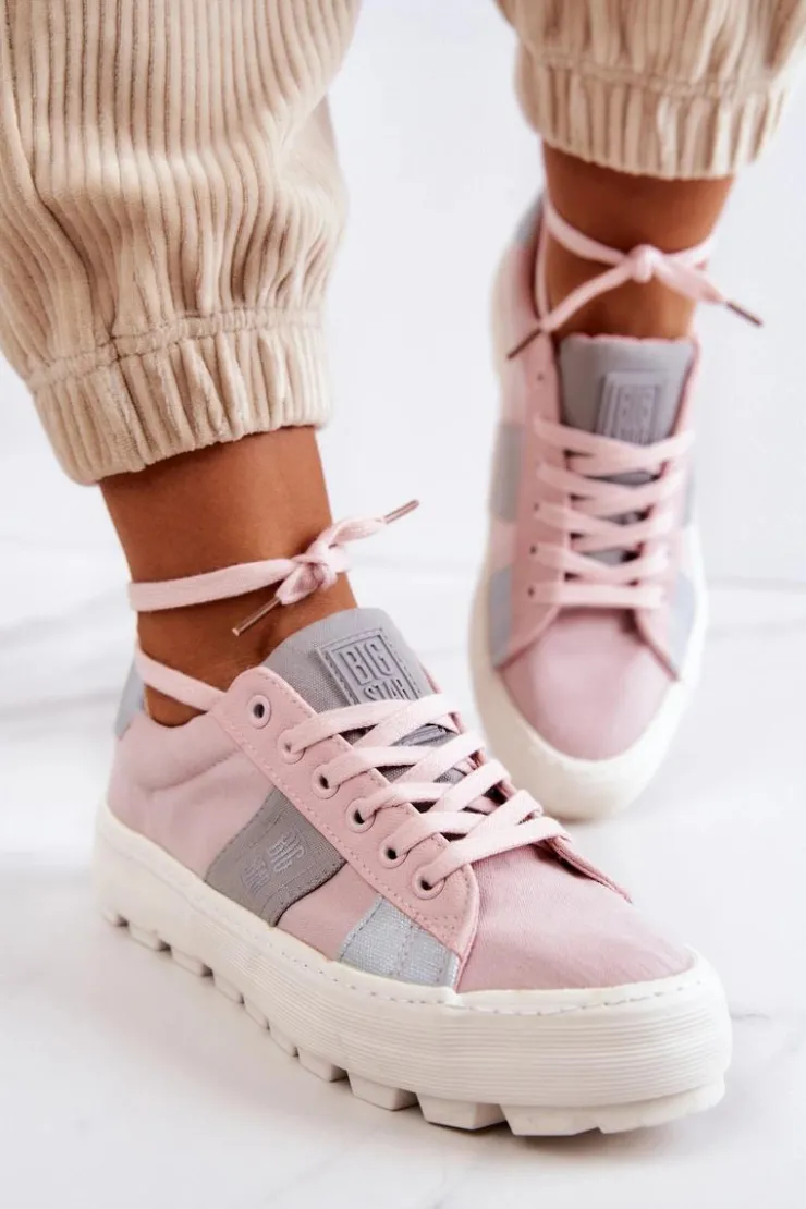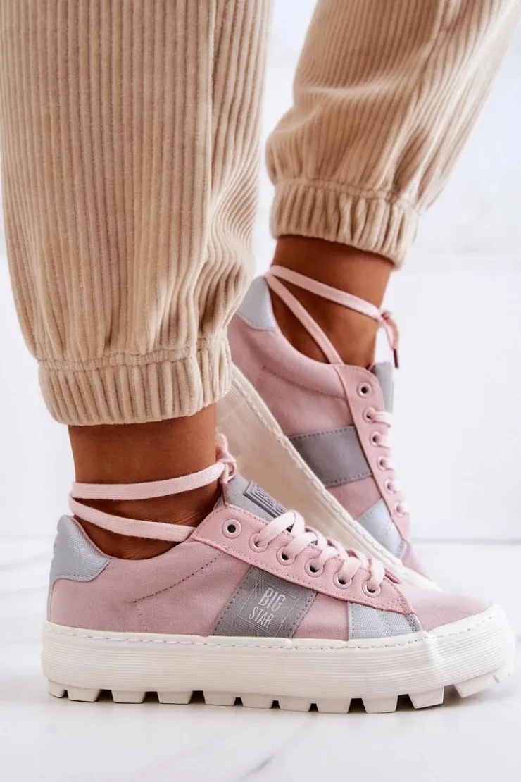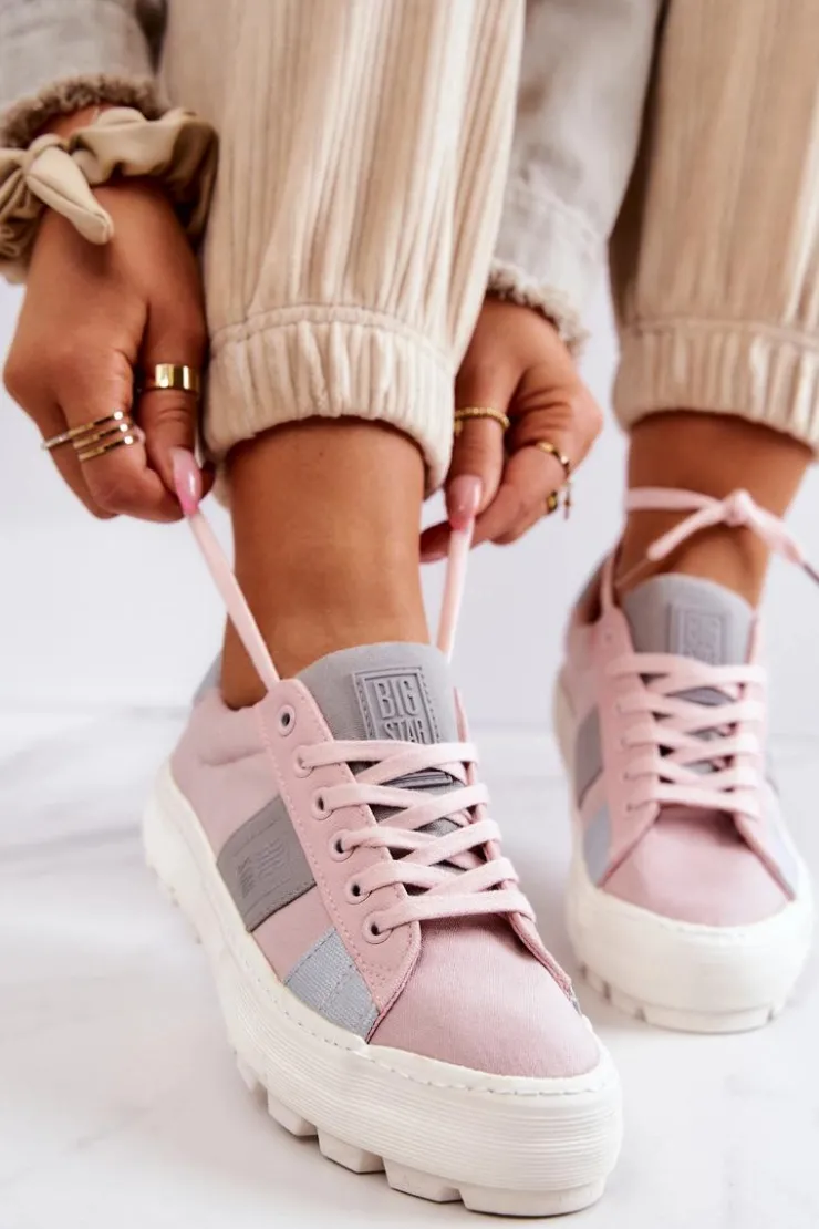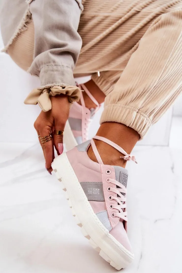 Piękny model tenisówek od marki Big Star! Wykonane z tkaniny, ozdobnie przyszyte kawałki materiałów w innym kolorze. Posiadają masywną, antypoślizgową platformę, która delikatnie uniesie Twoją sylwetkę, a jednocześnie zapewni stabilność na nierównym podłożu. Tenisówki klasycznie wiązane. Świetny model do wielu stylizacji! Przy wyborze rozmiaru prosimy sugerować się tabelą rozmiarów.