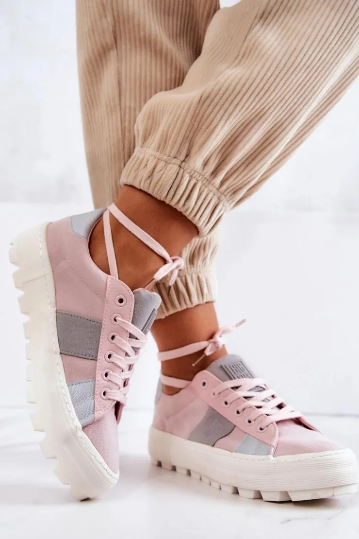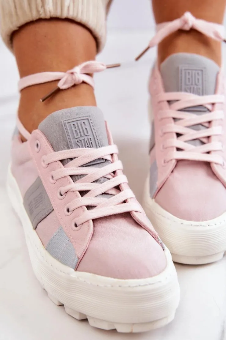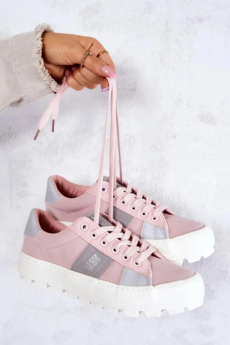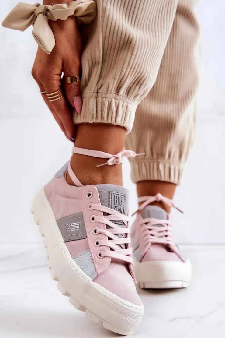 Piękny model tenisówek od marki Big Star! Wykonane z tkaniny, ozdobnie przyszyte kawałki materiałów w innym kolorze. Posiadają masywną, antypoślizgową platformę, która delikatnie uniesie Twoją sylwetkę, a jednocześnie zapewni stabilność na nierównym podłożu. Tenisówki klasycznie wiązane. Świetny model do wielu stylizacji! Przy wyborze rozmiaru prosimy sugerować się tabelą rozmiarów.