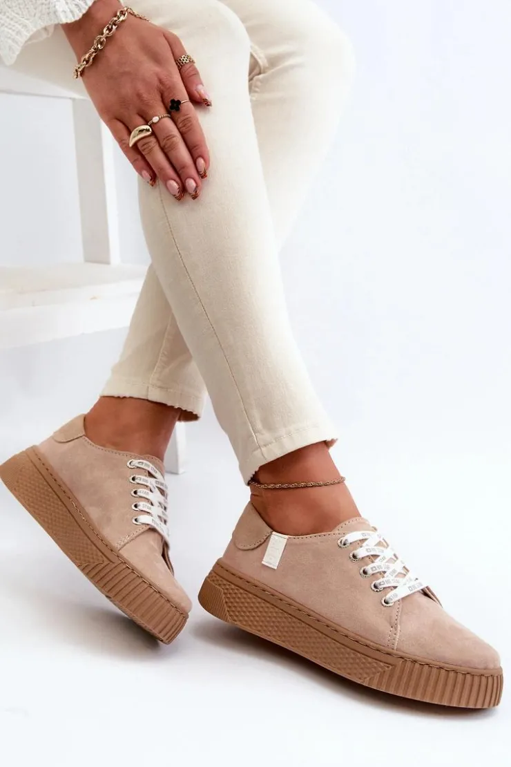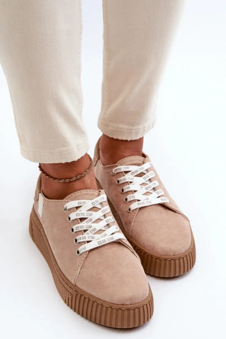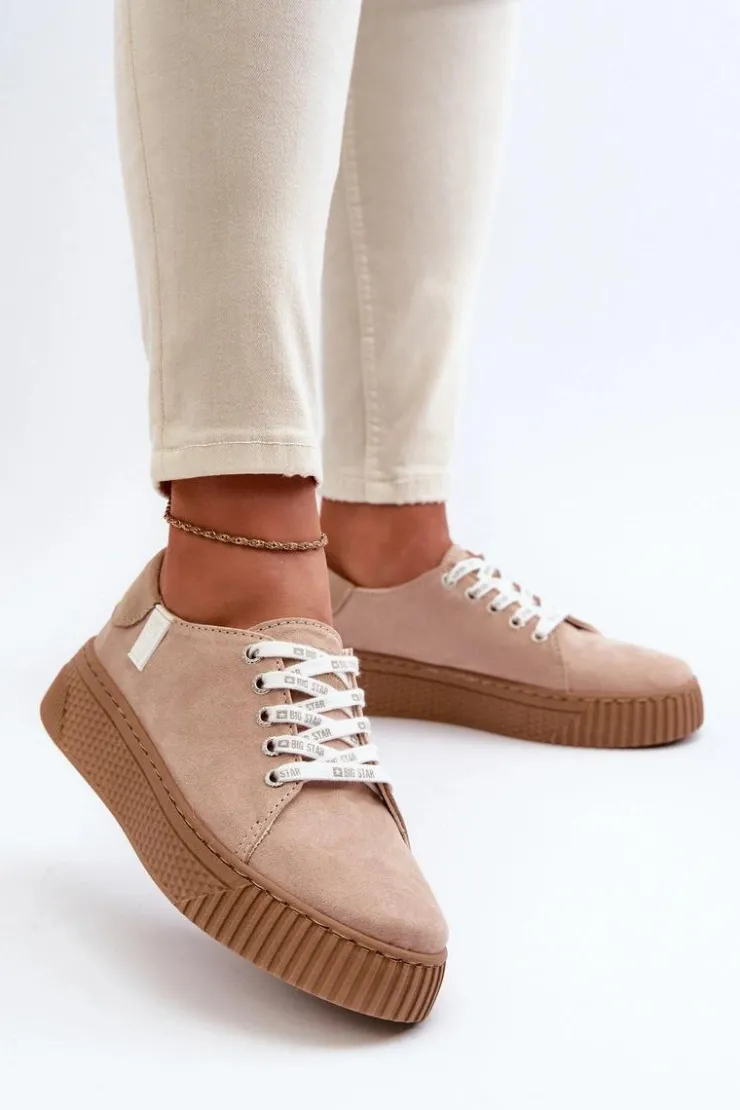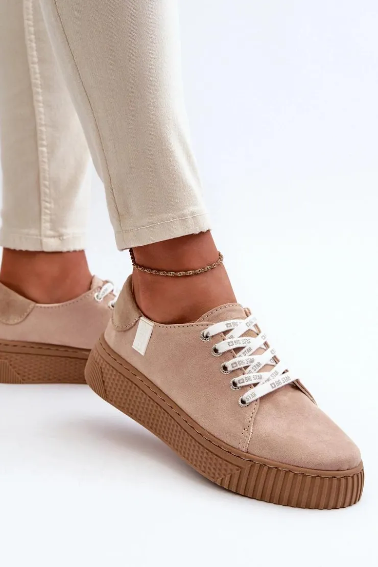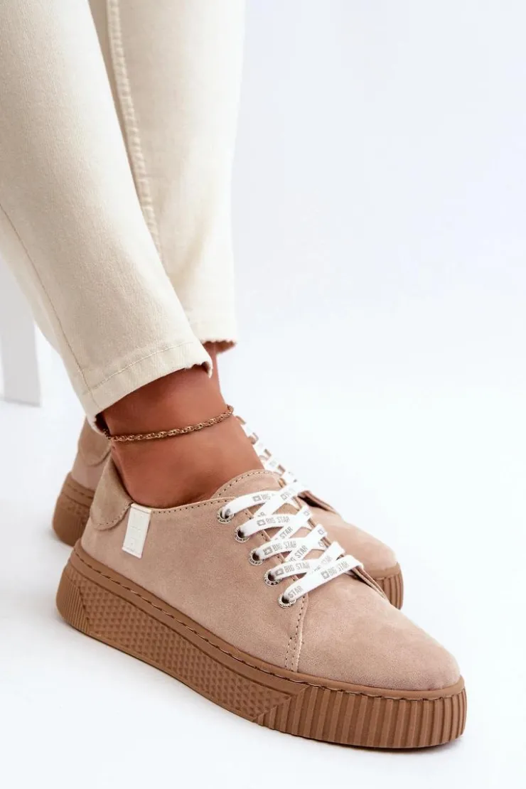Big Star Shoes Trampki Damskie Big Star|Trampki Damskie Niskie*Trampki Damskie MEMORY FOAM SYSTEM BIG STAR NN276002 Ciemnobeżowe Beżowy