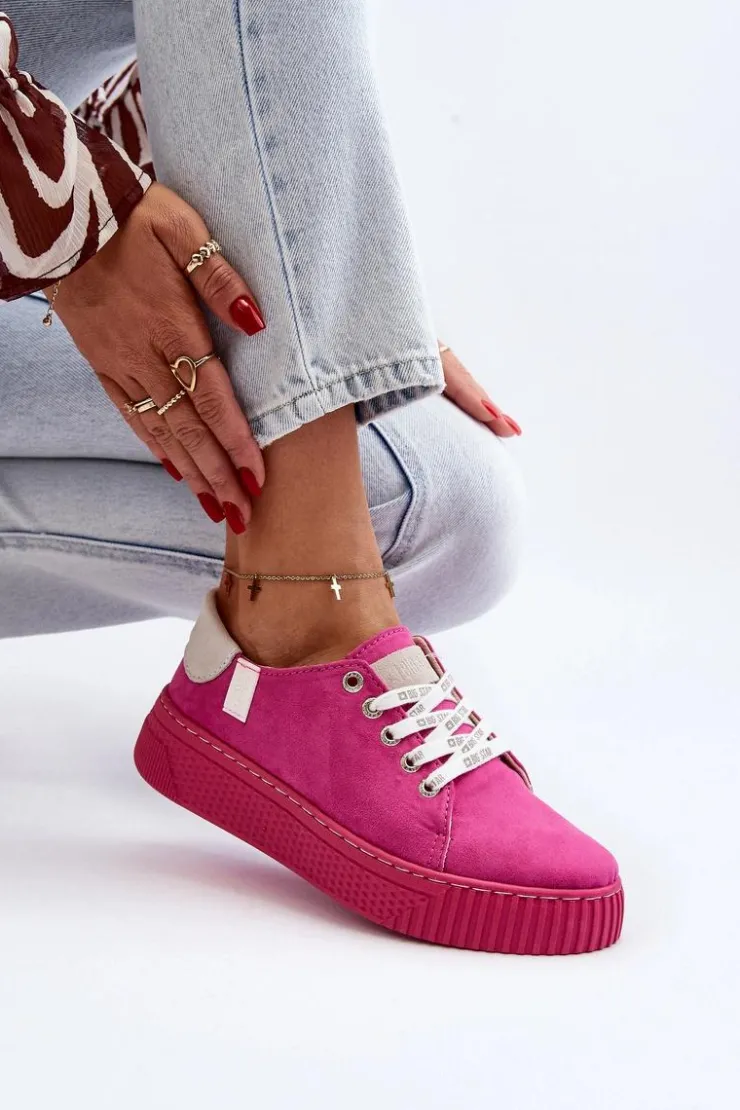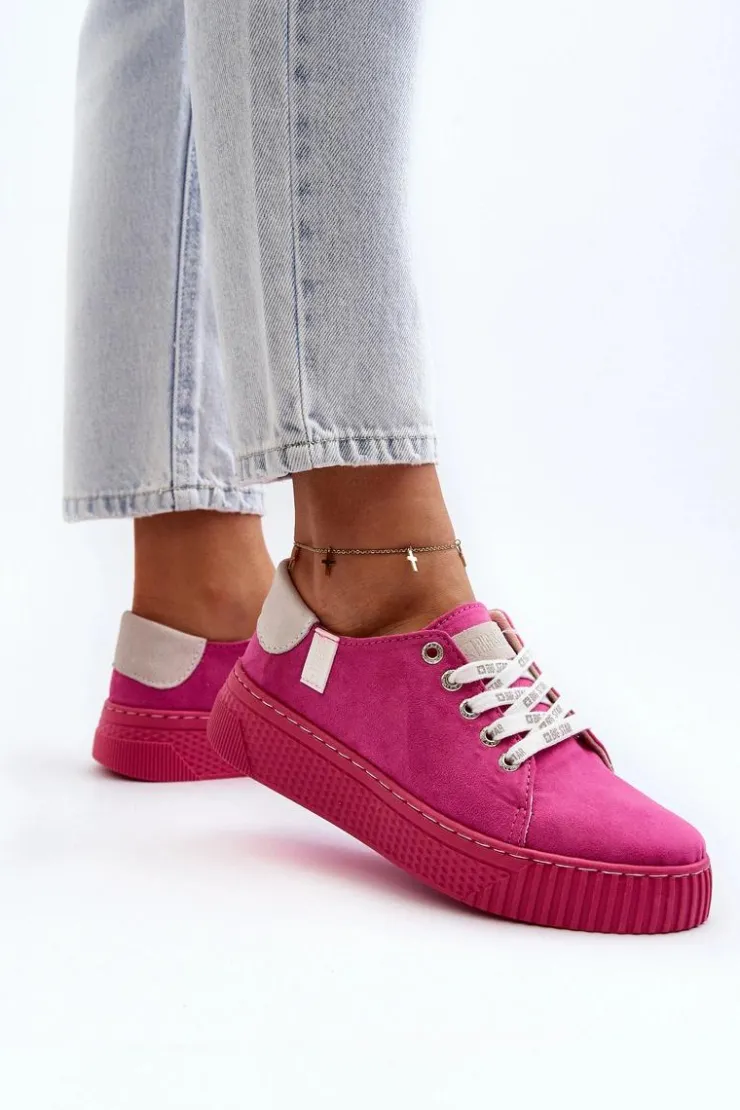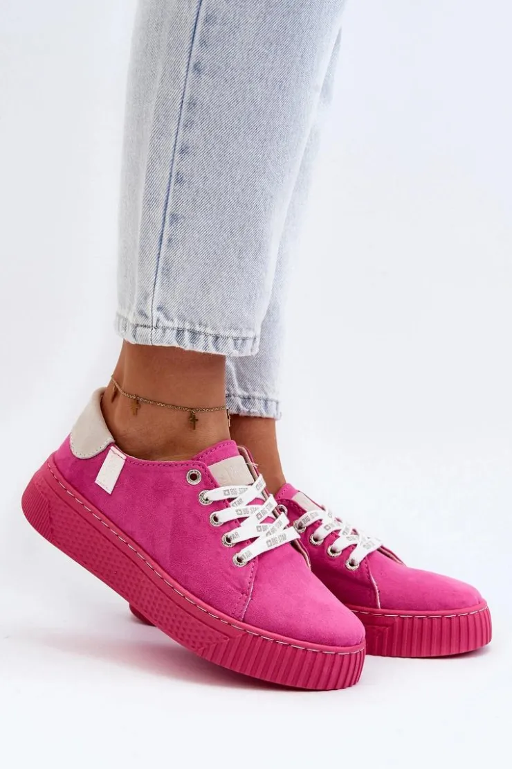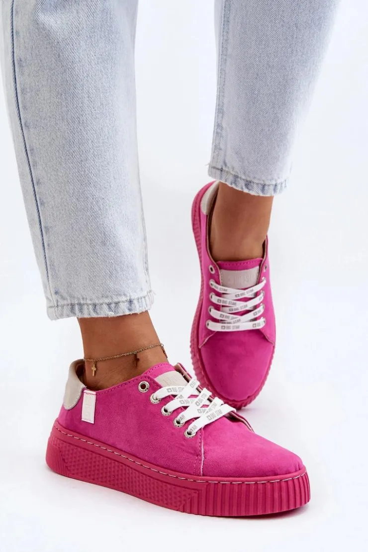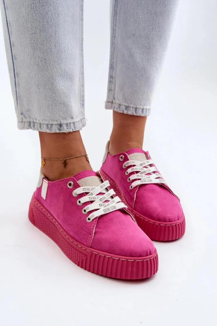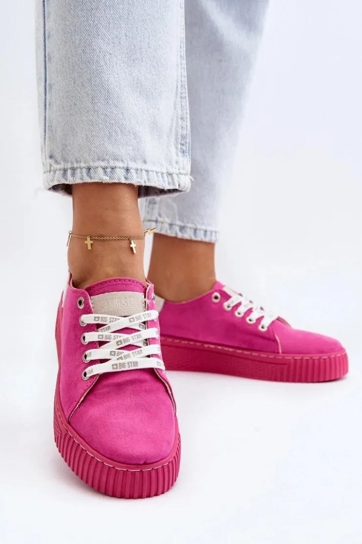 Damskie trampki od marki Big Star wykonane z eko skóry. Osadzone na grubej platformie z gumowego tworzywa. Noski zaokrąglone. Model ten posiada wyjątkową wkładkę MEMORY FOAM SYSTEM, która zapamiętuje kształt stopy, zapewnia doskonałe dopasowanie, absorbuje wstrząsy oraz jest odporna na odkształcenia. Dodatkowo struktura pianki pozwala na odparowywanie wilgoci i regulację temperatury. Ten niezwykle stylowy fason koniecznie musi się znaleźć w Twojej wiosenno-letniej garderobie! Przy wyborze rozmiaru prosimy sugerować się tabelą rozmiarów.