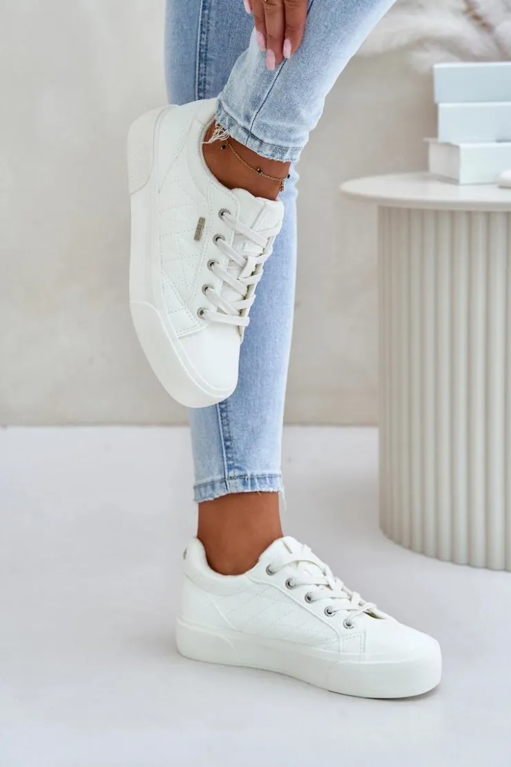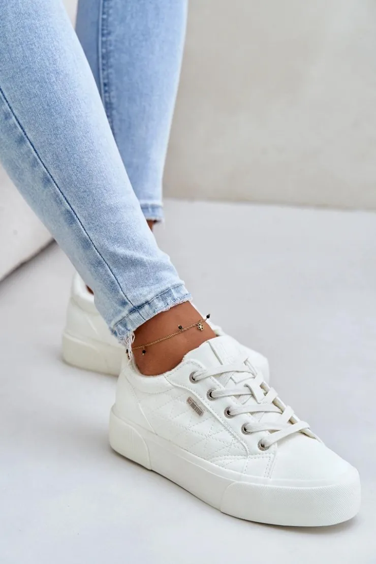 Trampki Big Star wykonane z eko skóry to stylowe i wygodne obuwie na chłodniejsze dni. Osadzone na platformie, dodają charakteru każdej stylizacji, jednocześnie zapewniając komfort noszenia. Ocieplane kocem obuwniczym, świetnie sprawdzą się w chłodniejsze dni, zapewniając ciepło i wygodę. Cholewka ozdobiona przeszyciami. Zaokrąglone noski. Przy wyborze rozmiaru prosimy sugerować się tabelą rozmiarów.