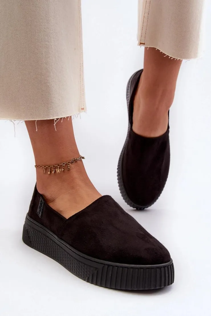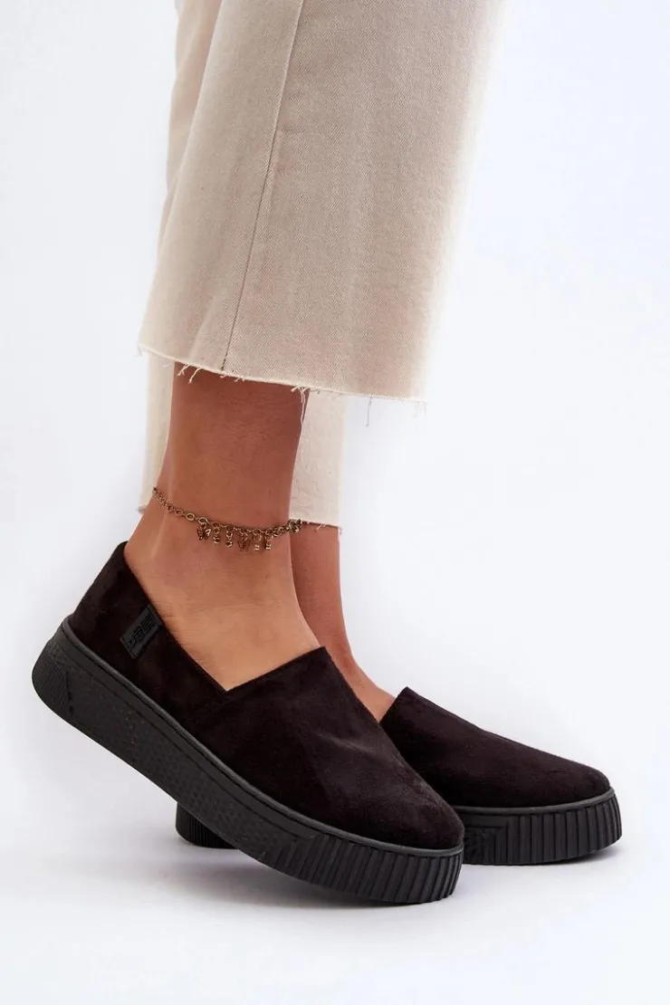 Big Star Shoes Trampki Damskie Slip-On|Trampki Damskie Big Star*Tenisówki Damskie Na Platformie NN276010 Memory Foam System Czarne