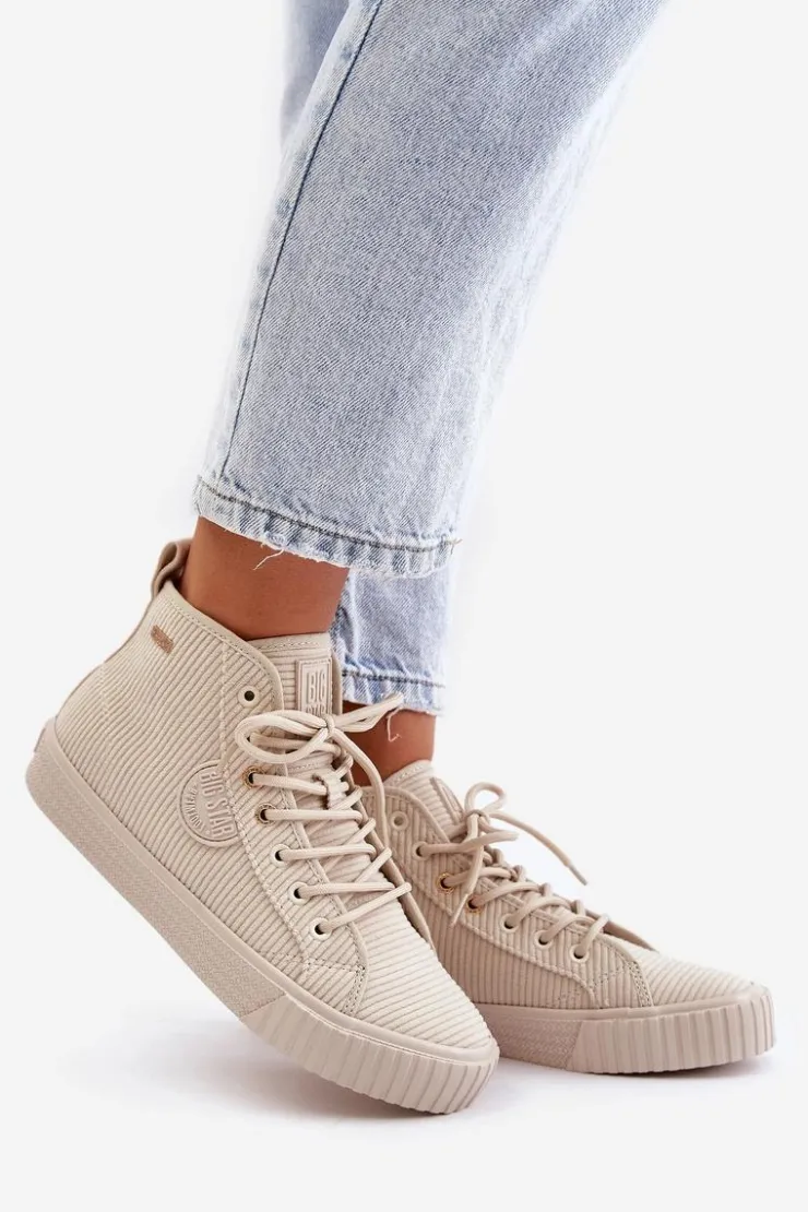 Trampki damskie z prążkowaną cholewką od marki Big Star. Wykonane z materiału tekstylnego. Osadzone na podeszwie z gumowego tworzywa. Noski zaokrąglone. Środek ocieplany futerkiem typu baranek. Dodatkowo model ten posiada wkładkę HI-POLY SYSTEM, która jest oddychająca, absorbuje wilgoć, amortyzuje wstrząsy oraz jest odporna na ścieranie i odkształcenia. Przy wyborze rozmiaru prosimy sugerować się poniższą tabelą rozmiarów.