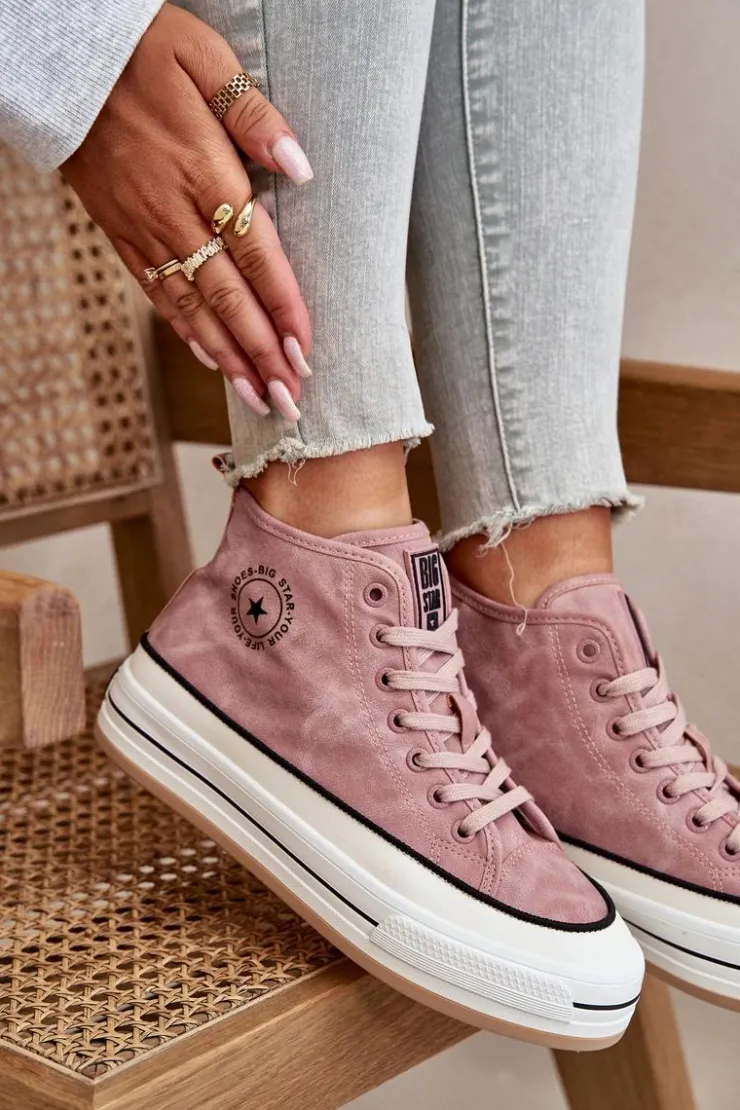 Damskie trampki od marki Big Star. Wykonane z wysokiej jakości materiałów, gwarantują wygodę i komfort noszenia przez cały dzień. Ich kolor sprawia, że łatwo dopasują się do różnych stylizacji i będą odpowiednie zarówno na co dzień, jak i na bardziej formalne okazje. Trampki posiadają wygodną wkładkę, która zapewnia dodatkowy komfort podczas chodzenia. Solidna podeszwa z gumy gwarantuje dobrą przyczepność na różnego rodzaju powierzchniach. Model ocieplany miłym w dotyku kocem obuwniczym. Doskonałe na sezon jesienno-zimowy! Przy wyborze rozmiaru prosimy sugerować się tabelą rozmiarów.