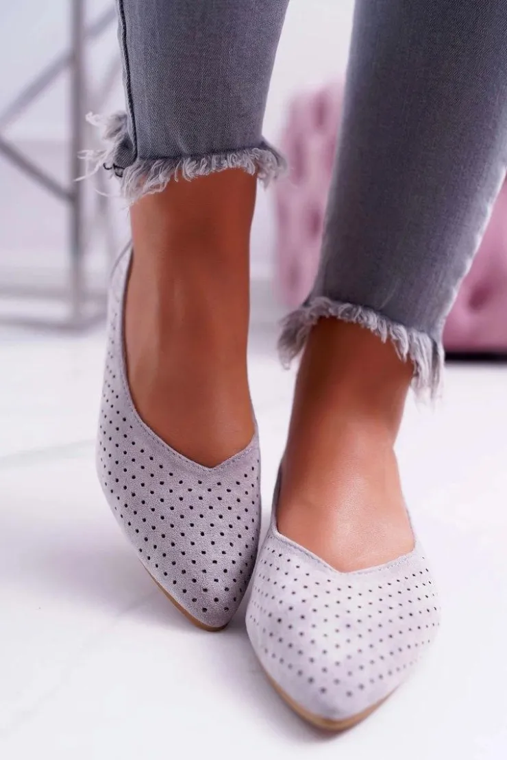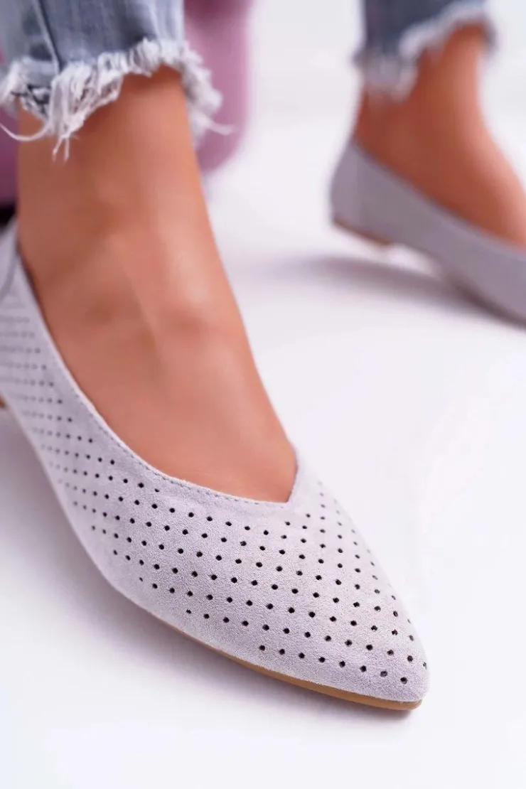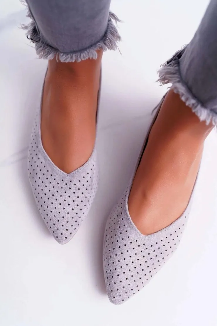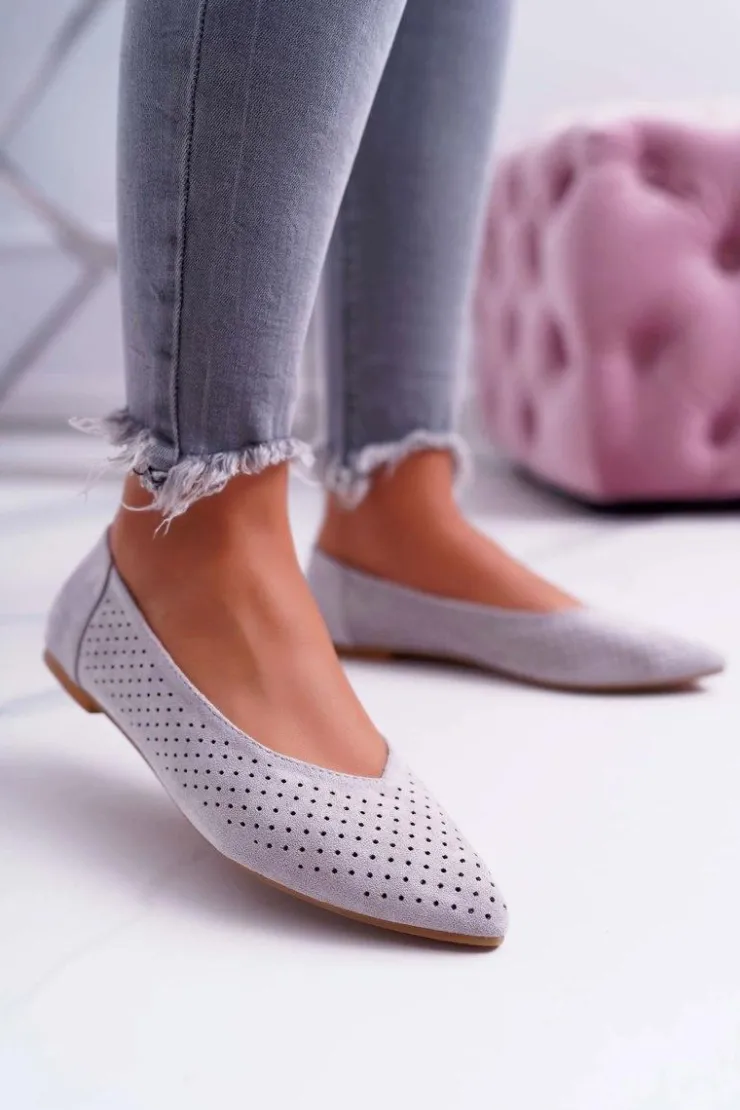 Boto Baleriny Klasyczne*Baleriny Damskie Lu Boo Ażurowe Szare Dessert