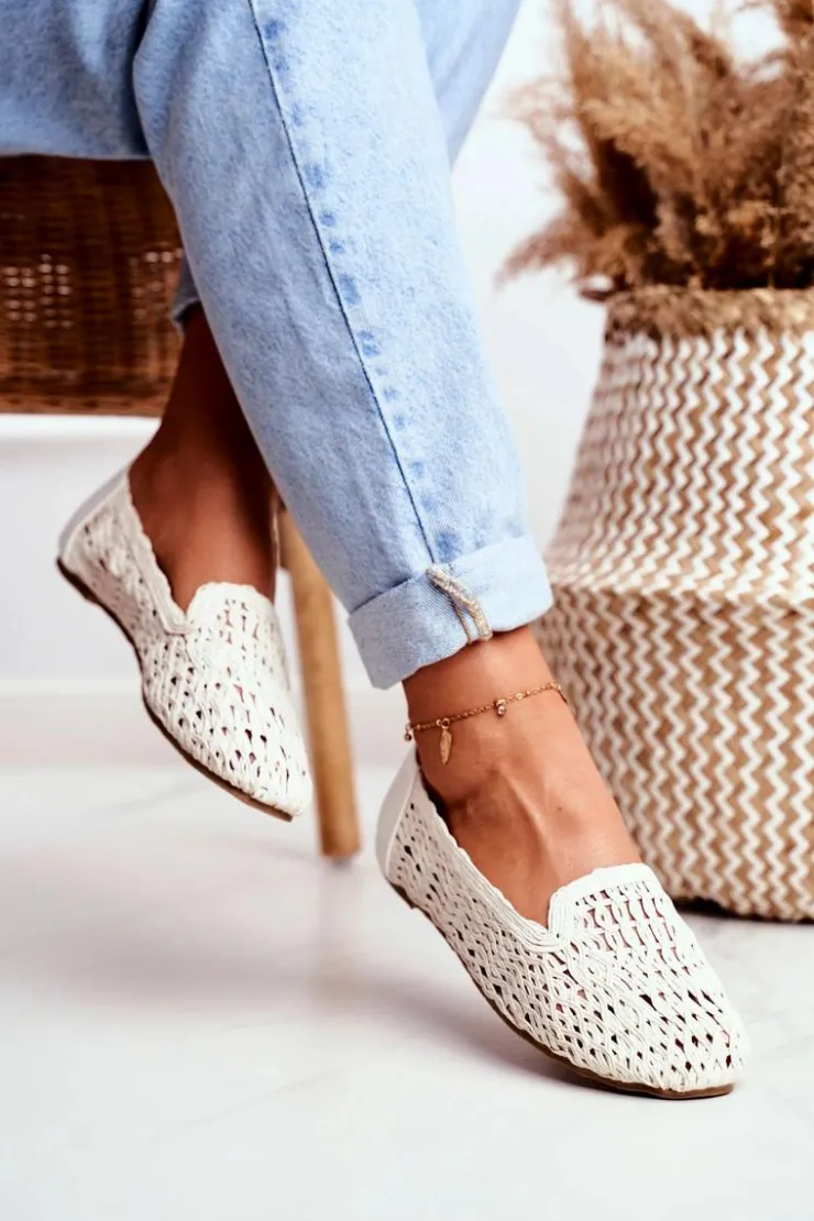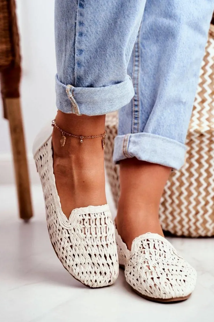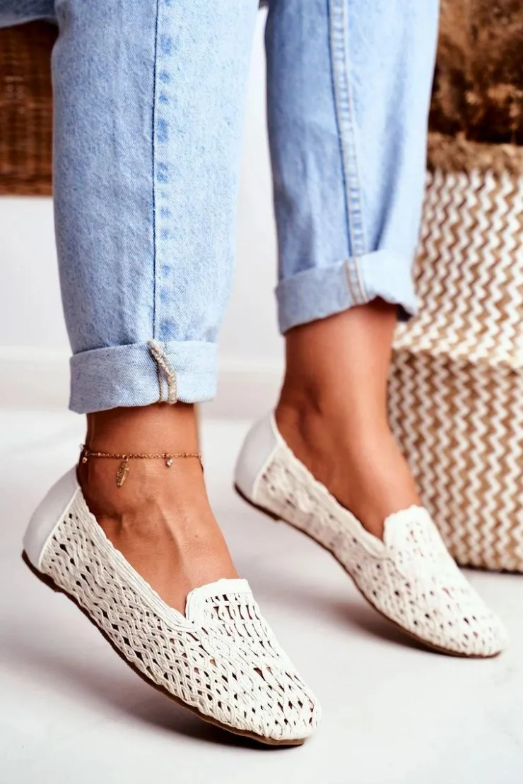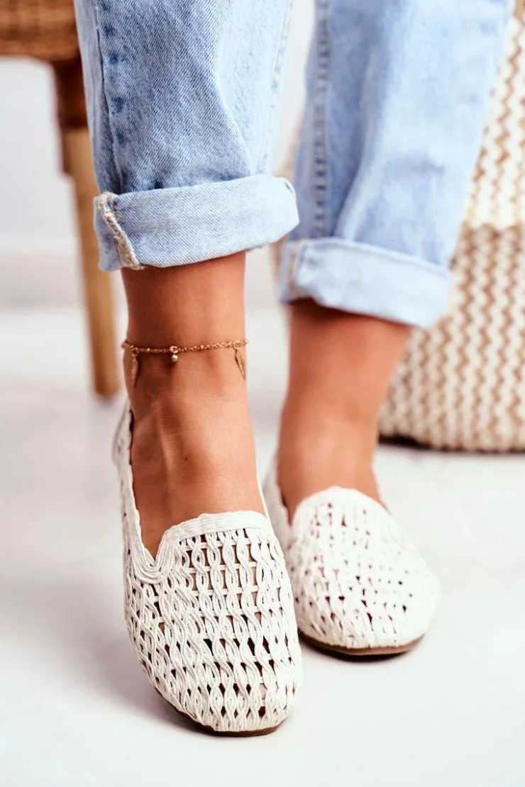 Boto Baleriny Klasyczne*Baleriny Damskie Lu Boo Plecione Białe 4Ever
