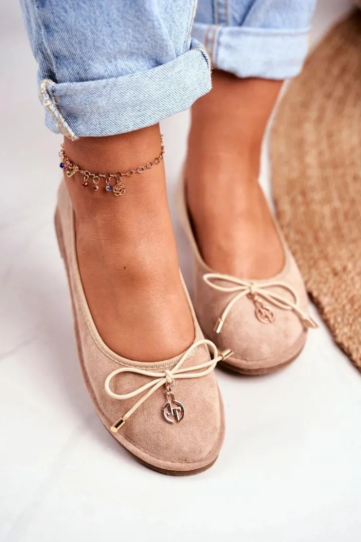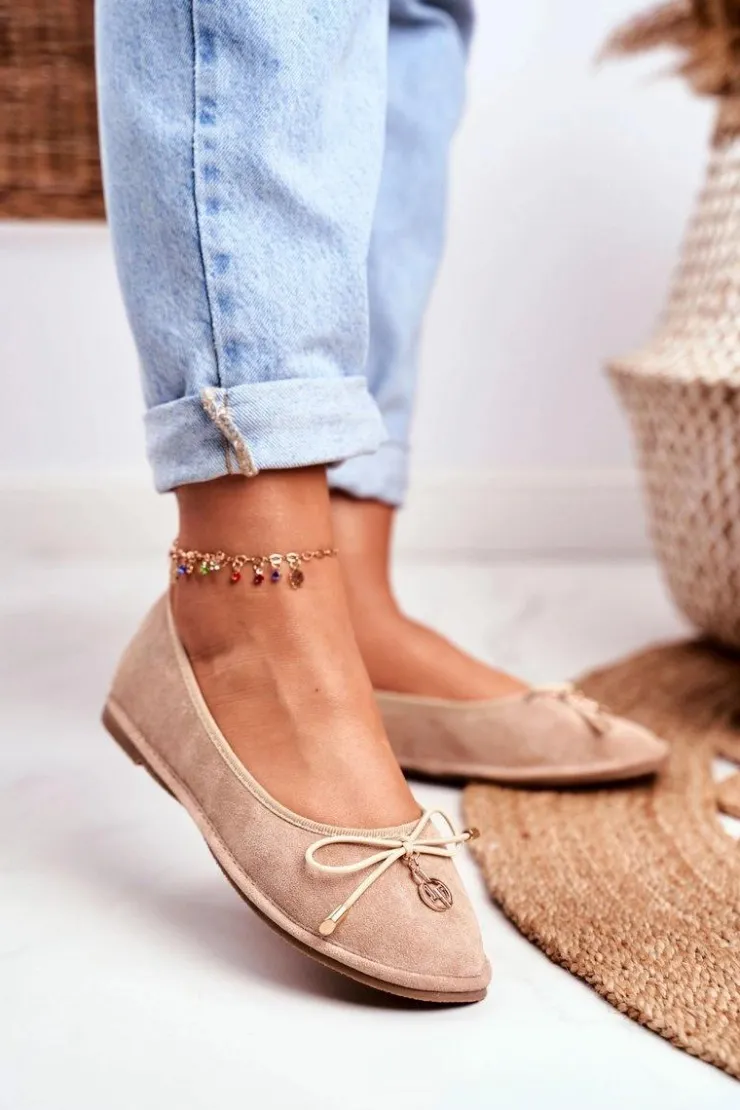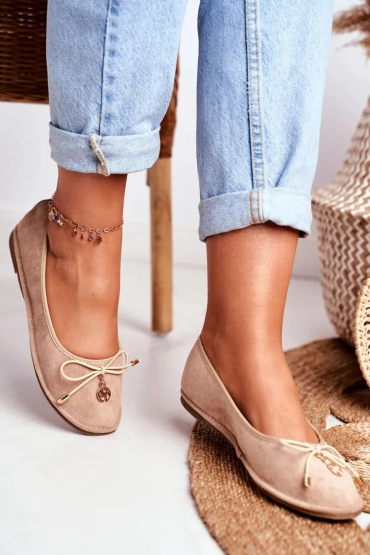 Boto Baleriny Klasyczne*Baleriny Damskie Lu Boo Zamszowe Beżowe Layla