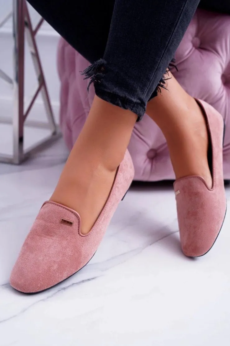 Boto Baleriny Klasyczne*Baleriny Damskie Zamszowe Pudrowy Róż Neala