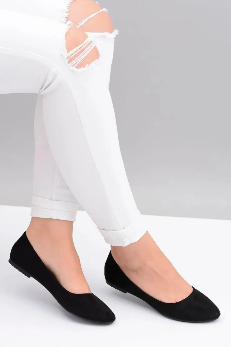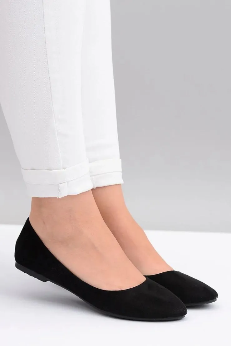 Boto Baleriny Klasyczne*Czarne Damskie Balerinki Zamsz Buenos