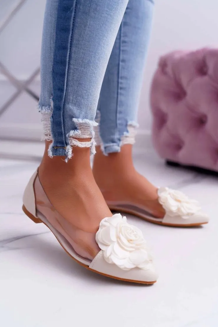 Balerinki to buty, które muszą znaleźć się w szafie każdej kobiety. Można je nosić przez cały rok do różnych okazji. Nasz model wpasuje się w wiele stylizacji – tych mniej, jak i bardziej oficjalnych. Nosek zdobiony dużym pięknym materiałowym kwiatem. Delikatna wkładka da nam komfort przez długie godziny. Piękne transparentne wstawki, sprawiają że fason jest niezwykle elegancki i kobiecy. Firma Lu Boo nie przestaje nas zaskakiwać, konieczne sprawdź całą naszą kolekcję!