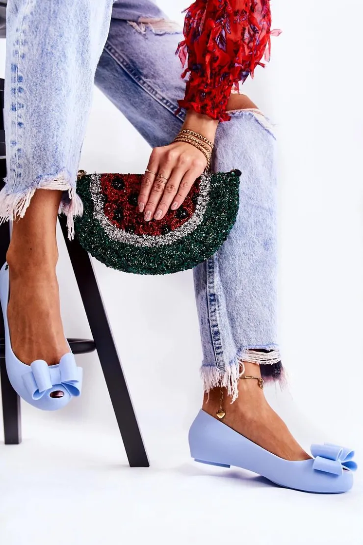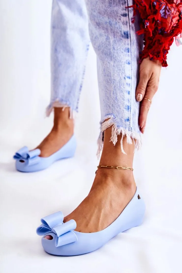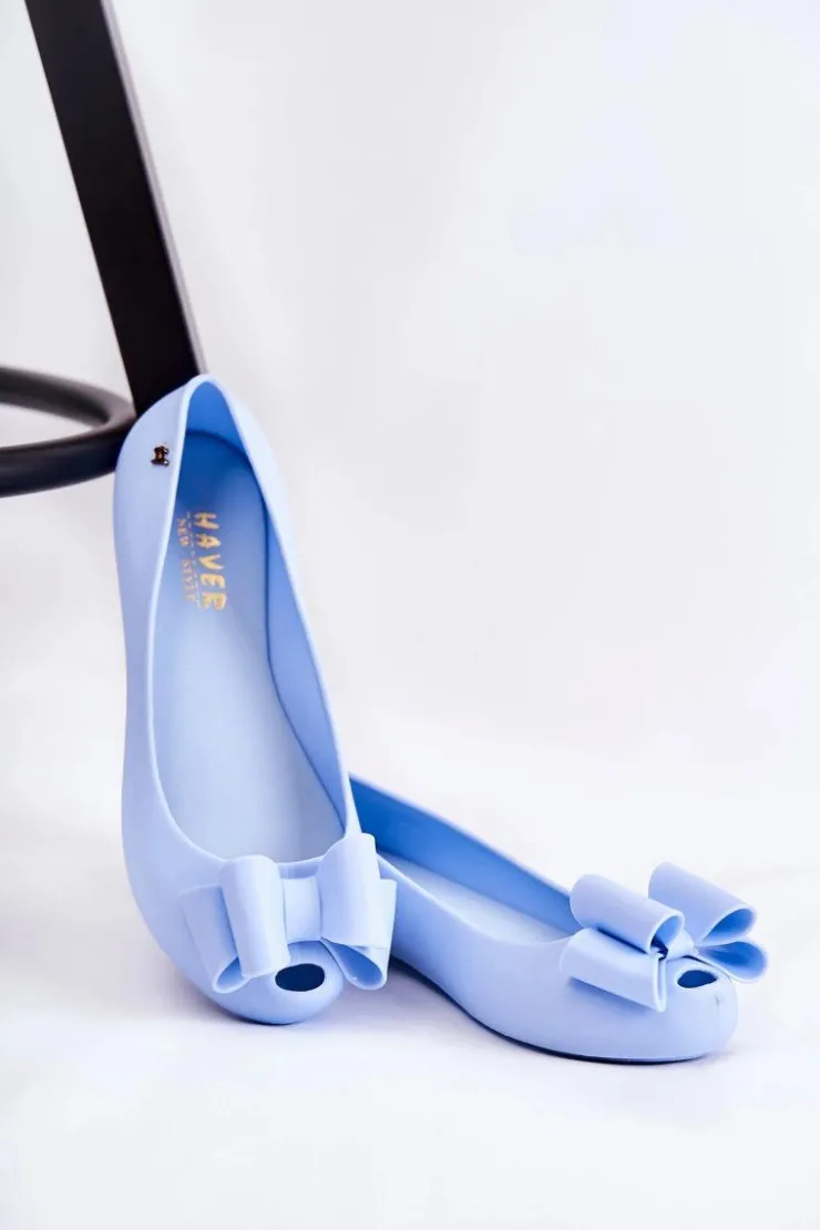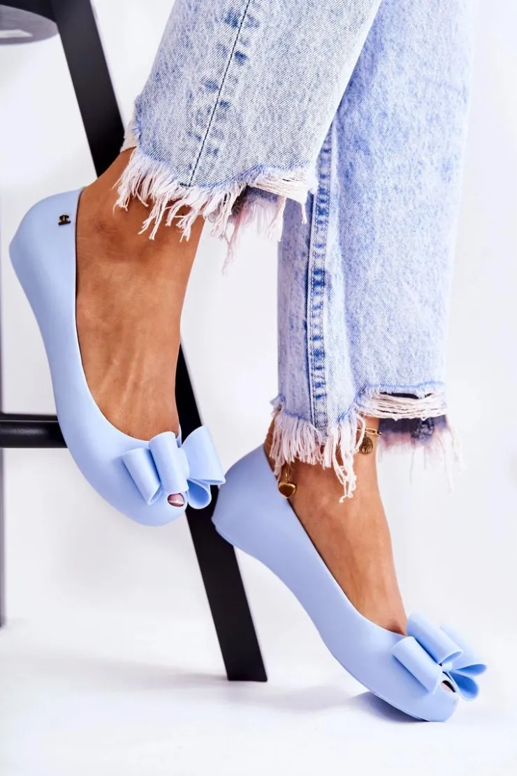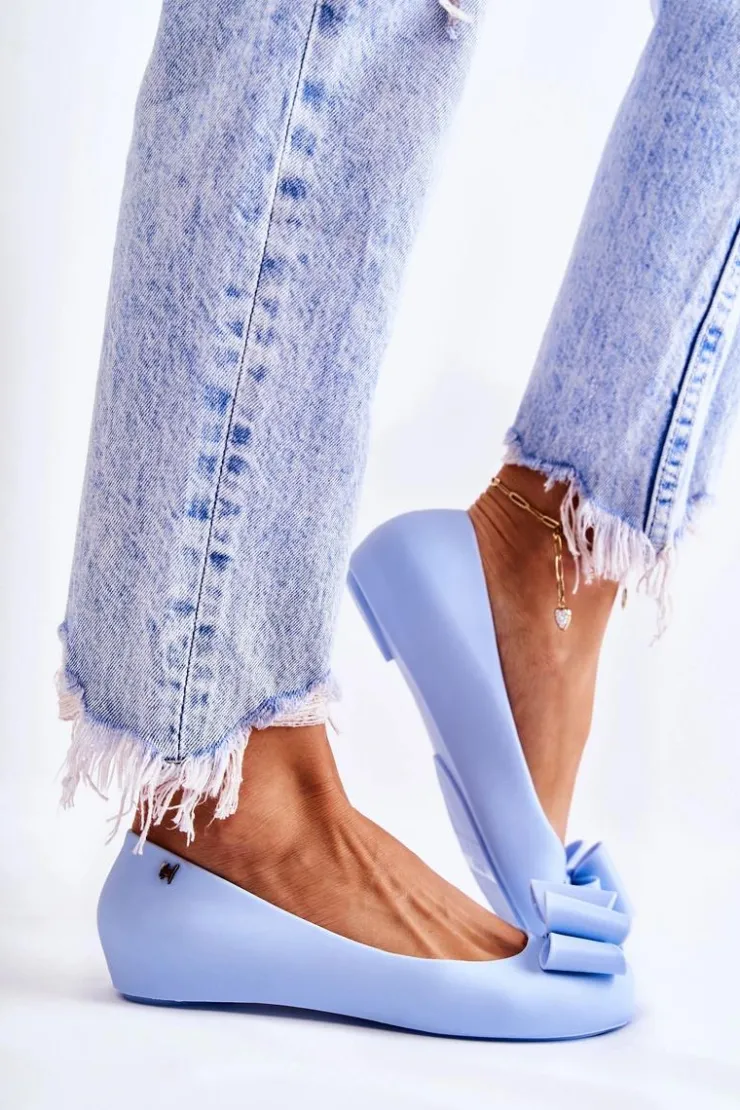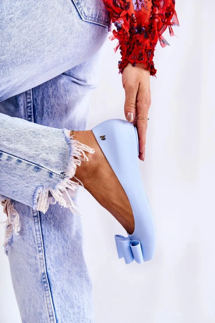 Boto Baleriny Klasyczne*Damskie Gumowe Baleriny Z Kokardą Niebieskie Florret