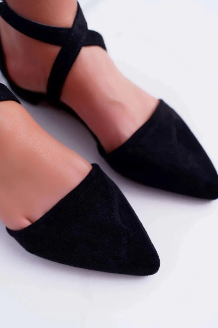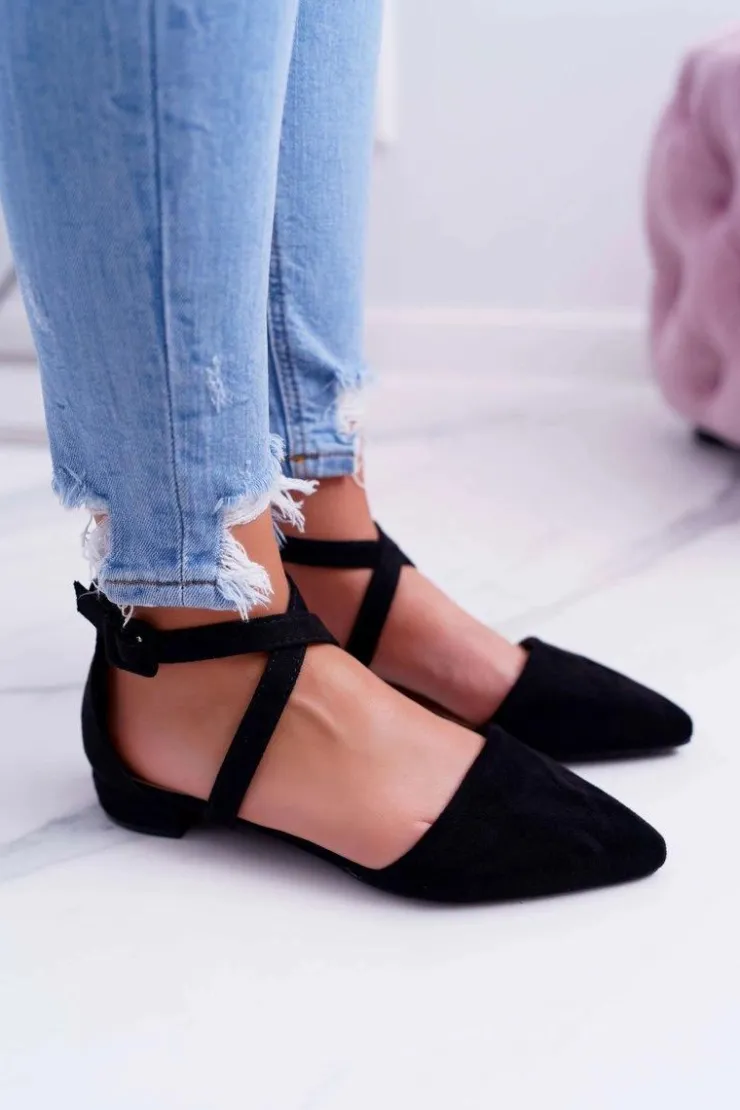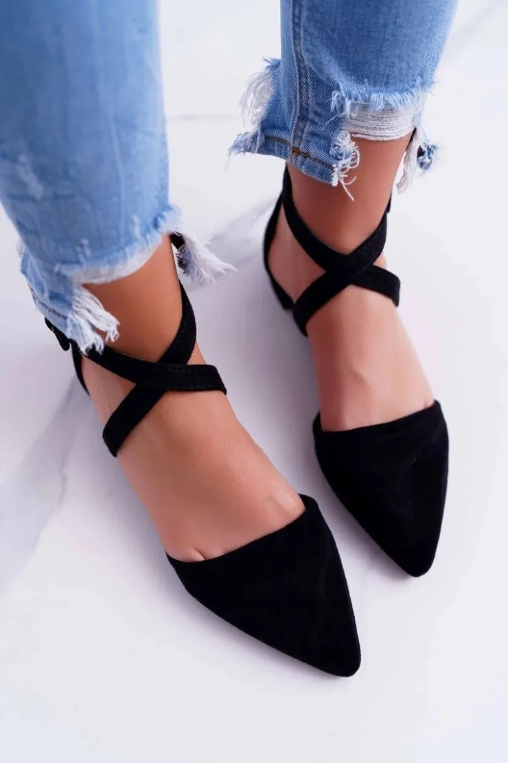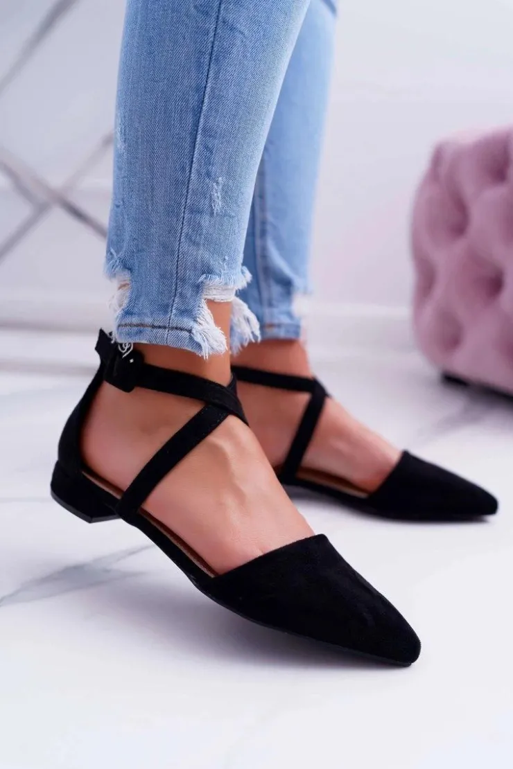 Boto Baleriny Klasyczne*Damskie Sandały Płaskie Czarne Zamszowe W Szpic Medena