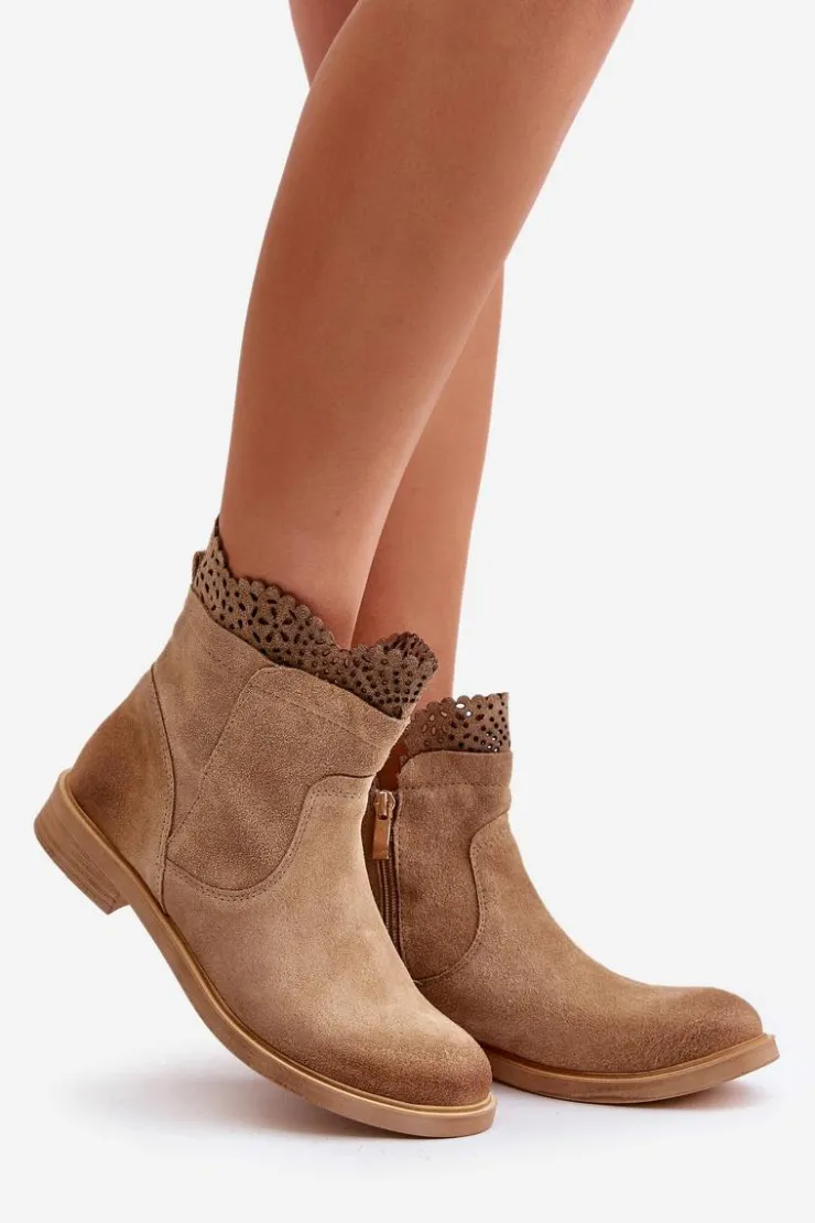 Boto Botki Ażurowe|Brązowe I Beżowe Botki*Niskie Botki Damskie Na Płaskim Obcasie Zamszowe Lewski 3624 Beżowe Beżowy