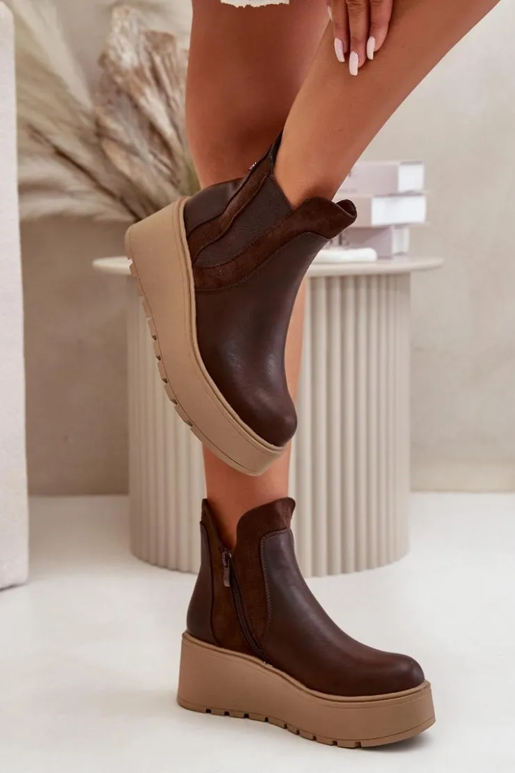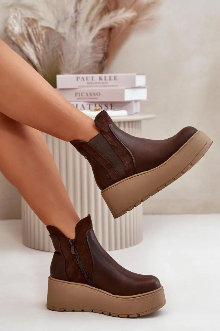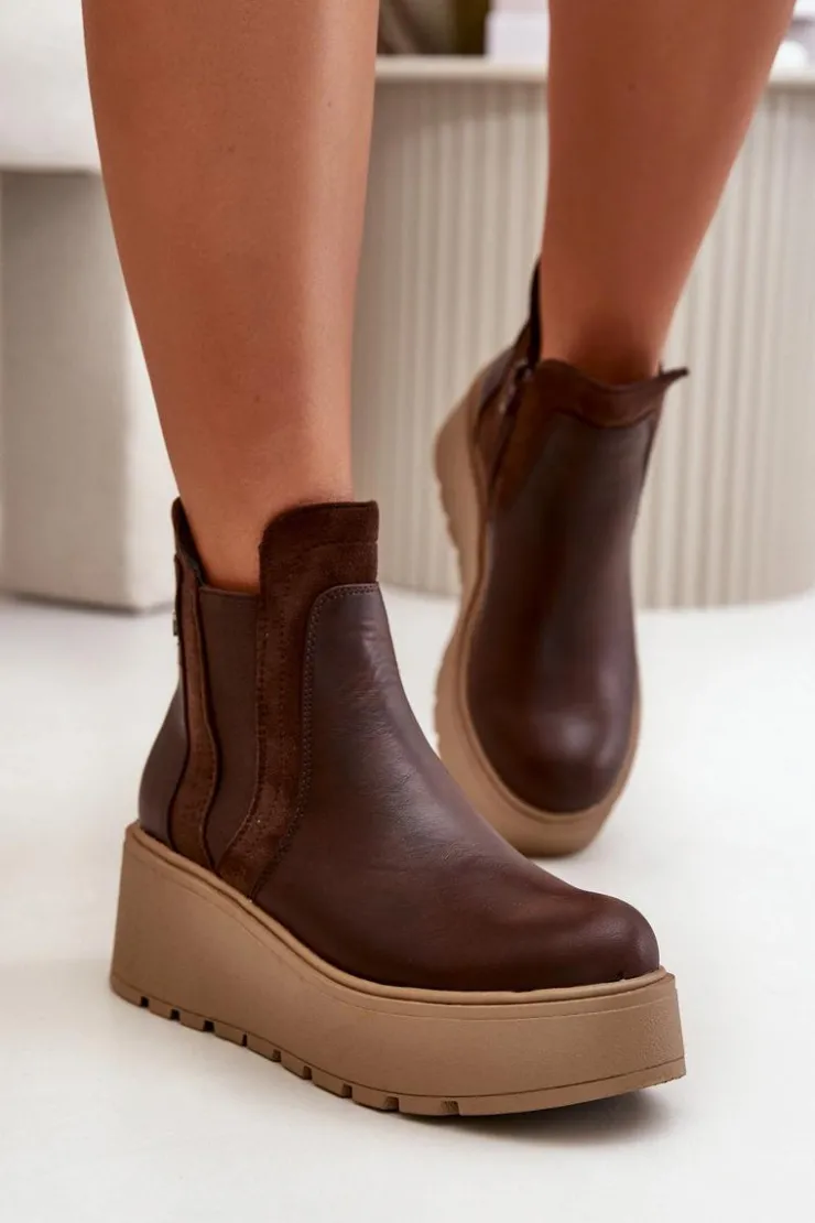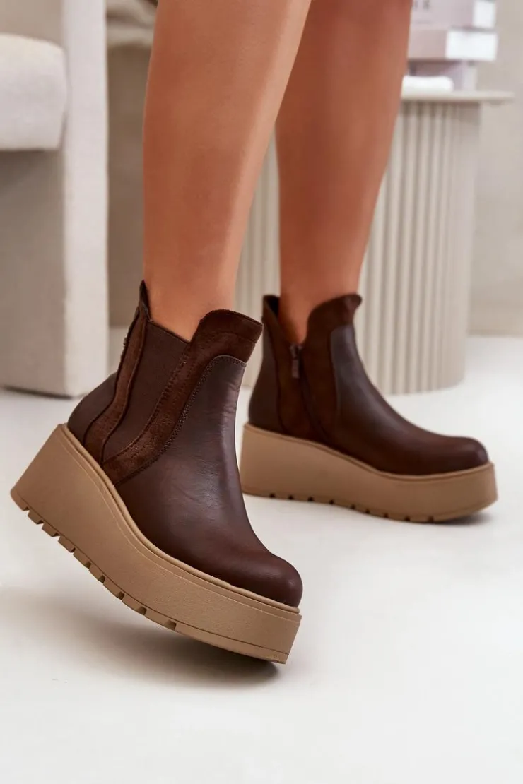 Botki damskie wykonane z eko skóry, osadzone na platformie i koturnie, to połączenie stylu i wygody. Praktyczne zapięcie na zamek ułatwia zakładanie, a wnętrze ocieplone kocem obuwniczym zapewnia ciepło i komfort w chłodniejsze dni. Te botki są idealne do codziennych stylizacji, dodając im modnego i eleganckiego wyglądu. Przy wyborze rozmiaru prosimy sugerować się tabelą rozmiarów.