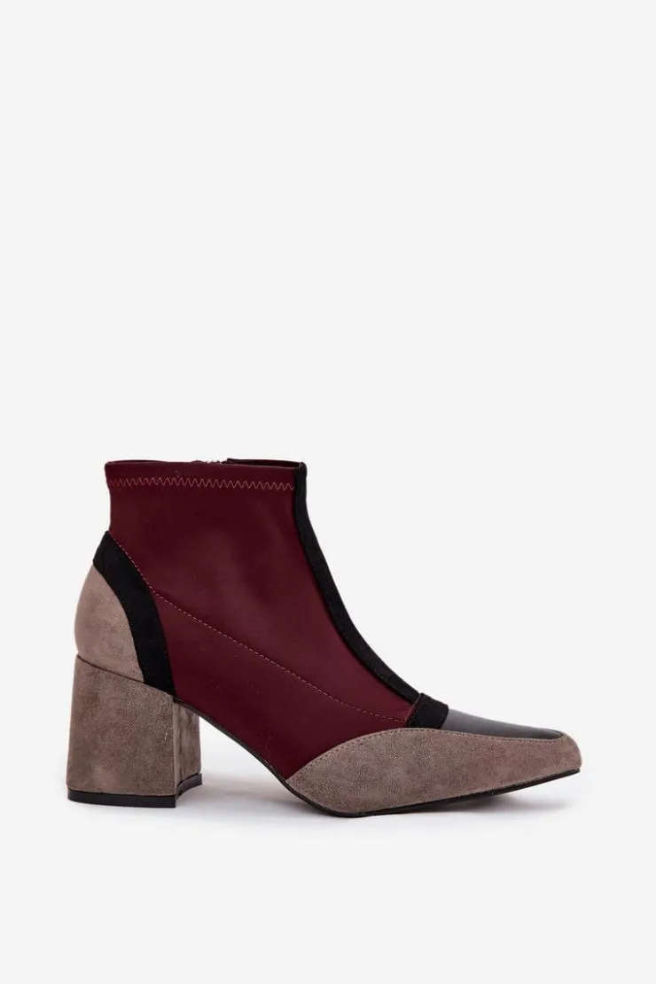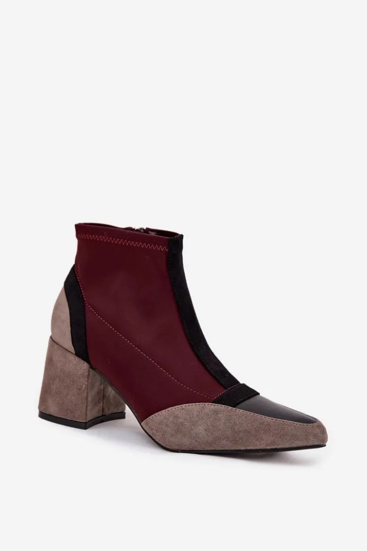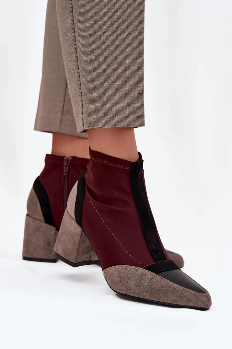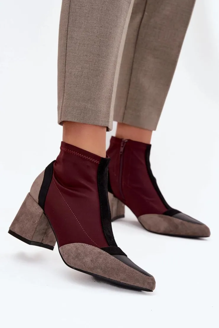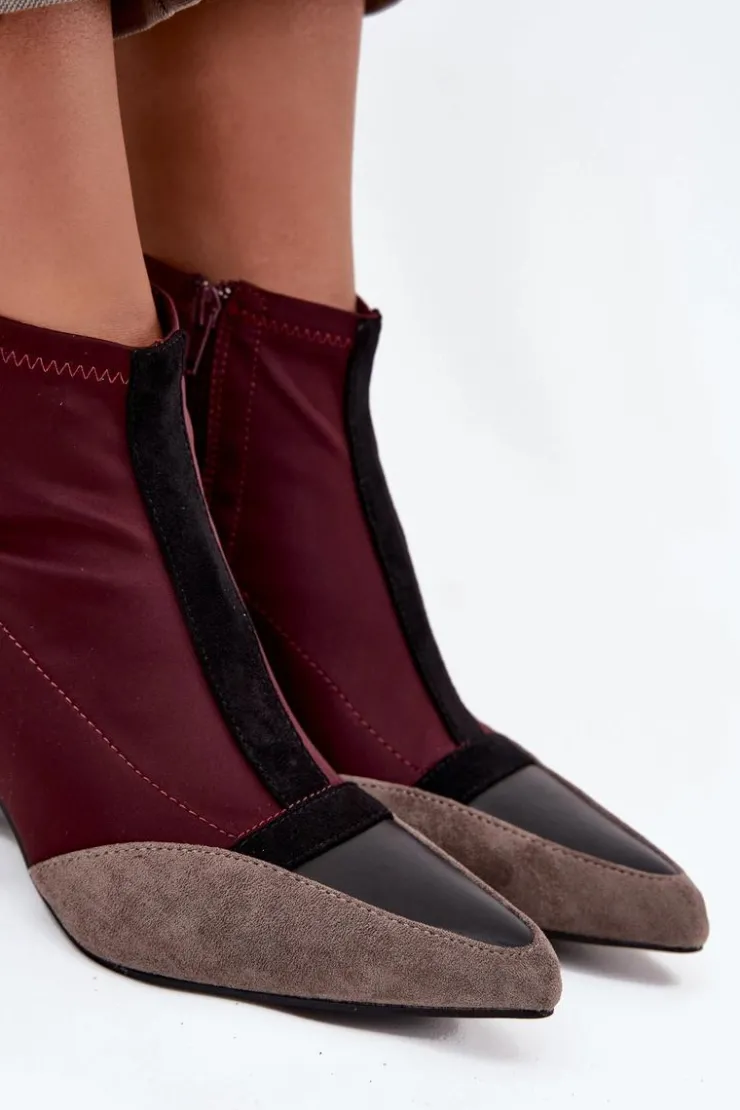 Botki damskie wykonane z połączenia materiału tekstylnego i eko zamszu to propozycja, która łączy oryginalny design z elegancją. Kontrastowe wstawki dodają całości modnego charakteru i sprawiają, że buty prezentują się wyjątkowo stylowo. Smukłe, szpiczaste noski optycznie wysmuklają stopę, podkreślając kobiecy wygląd i nadając sylwetce lekkości. Model osadzony jest na masywnym obcasie typu słupek, który zapewnia stabilność i wygodę podczas noszenia, a jednocześnie pięknie podkreśla linię nóg. Botki zapinane są na praktyczny zamek, co ułatwia zakładanie i zdejmowanie obuwia. To idealny wybór dla kobiet, które chcą połączyć komfort z nowoczesnym stylem – świetnie sprawdzą się zarówno w eleganckich stylizacjach, jak i w codziennych zestawach. Przy wyborze rozmiaru prosimy sugerować się tabelą rozmiarów.