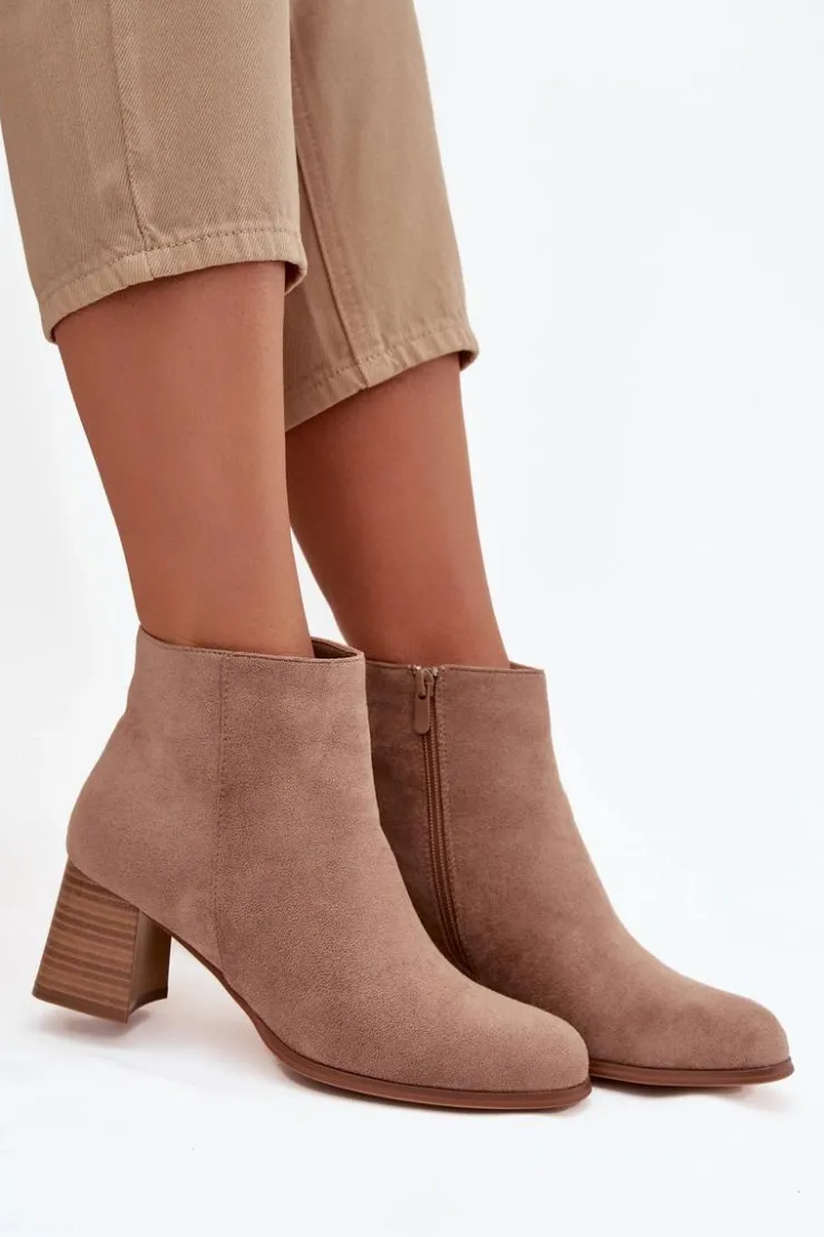 Botki damskie wykonane z eko zamszu to elegancka i uniwersalna propozycja na chłodniejsze dni. Model o klasycznym fasonie został osadzony na stabilnym obcasie typu słupek, który zapewnia wygodę i pewność kroku. Buty zapinane są na zamek, co ułatwia zakładanie i zdejmowanie. To ponadczasowe botki, które doskonale dopełnią zarówno codzienne, jak i bardziej eleganckie stylizacje. Przy wyborze rozmiaru prosimy sugerować się tabelą rozmiarów.