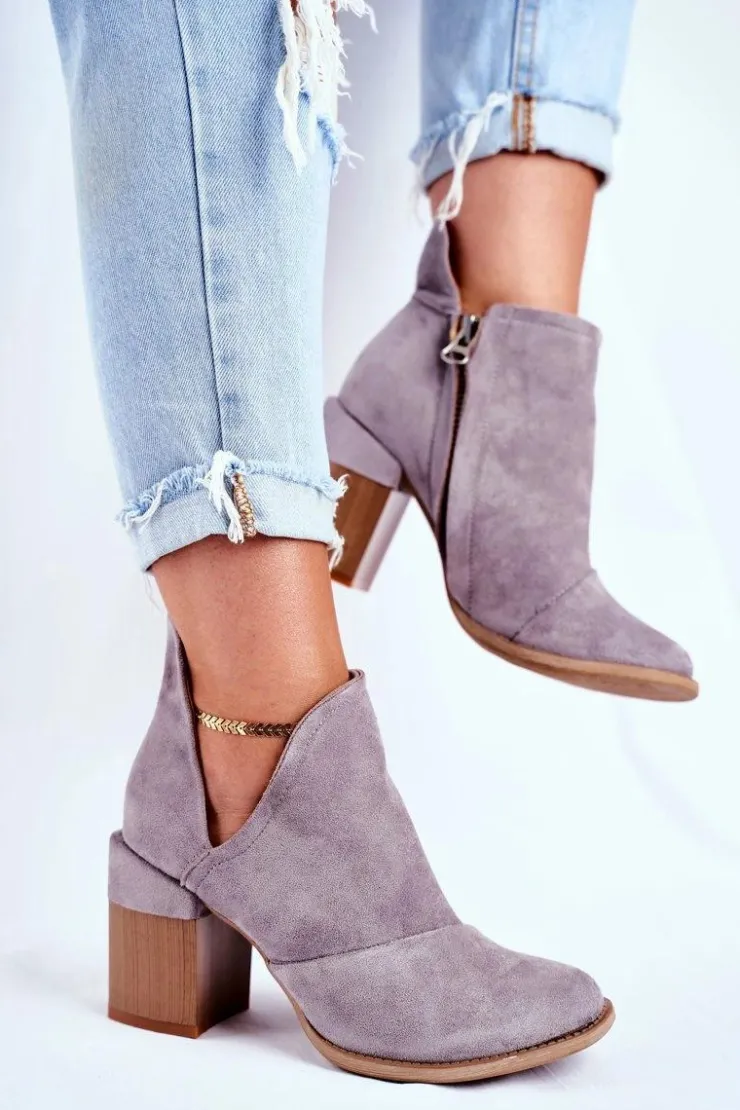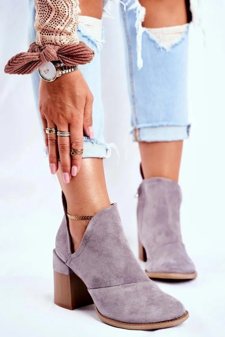 Boto Botki Na Słupku|Botki Na Obcasie*Damskie Botki Na Słupku Szare Wycięte Meliori