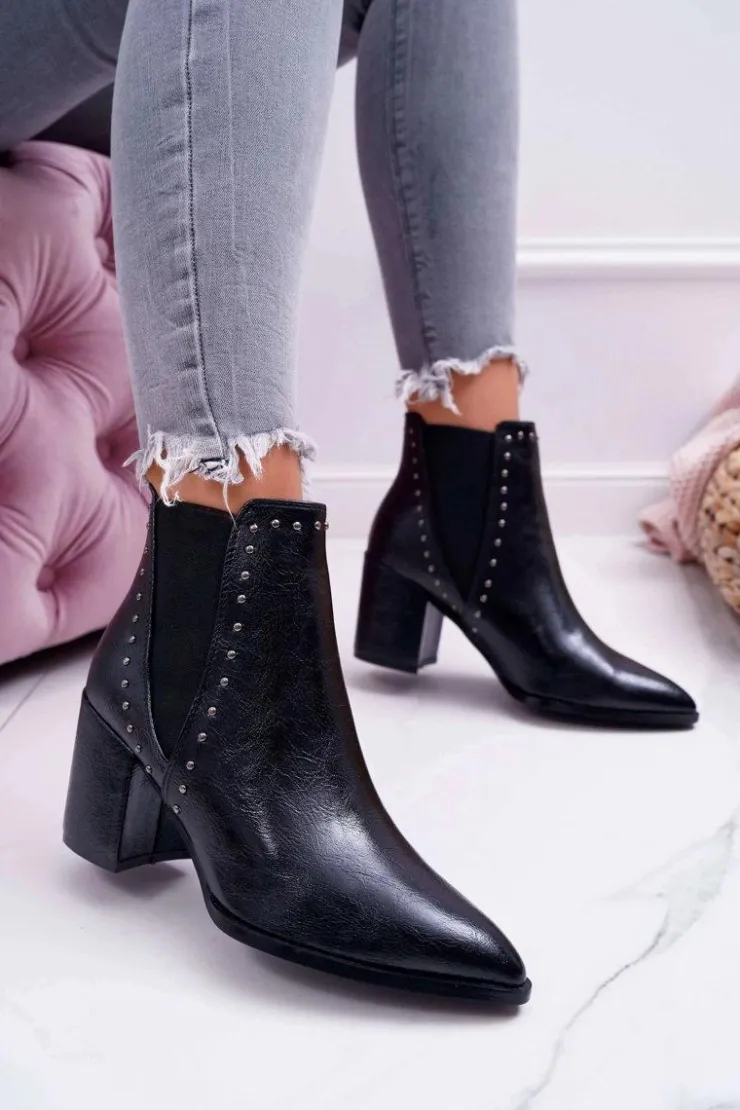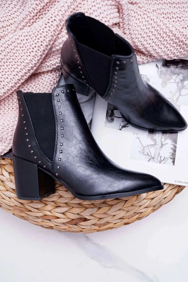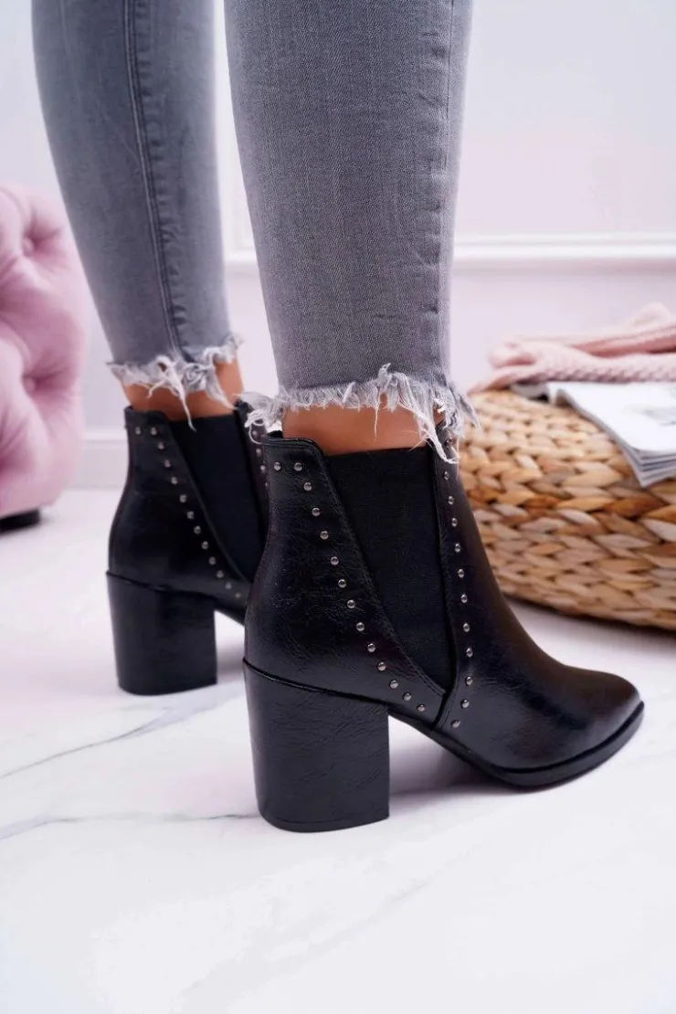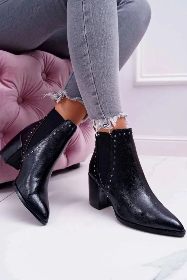 Boto Botki Na Słupku|Botki Zimowe Damskie*Botki Damskie Na Obcasie Z Gumkami Czarne Trini