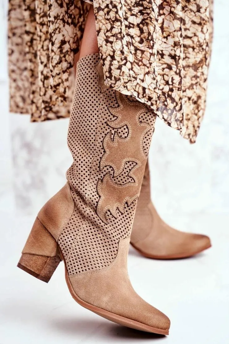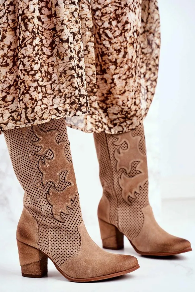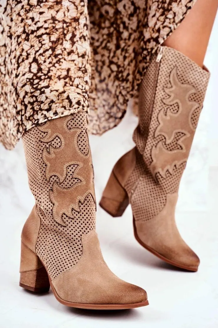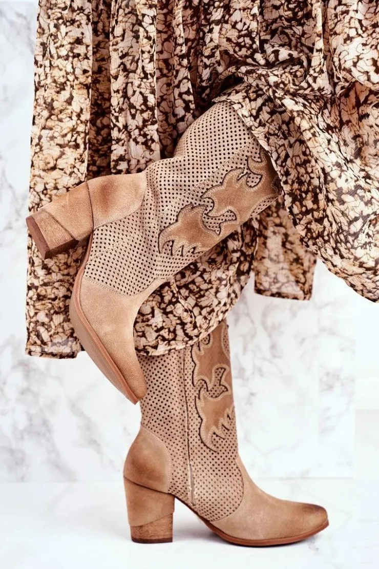 Boto Botki Na Słupku|Brązowe I Beżowe Botki*Damskie Botki Na Słupku Beżowe Skórzane Wysokie Rosemary