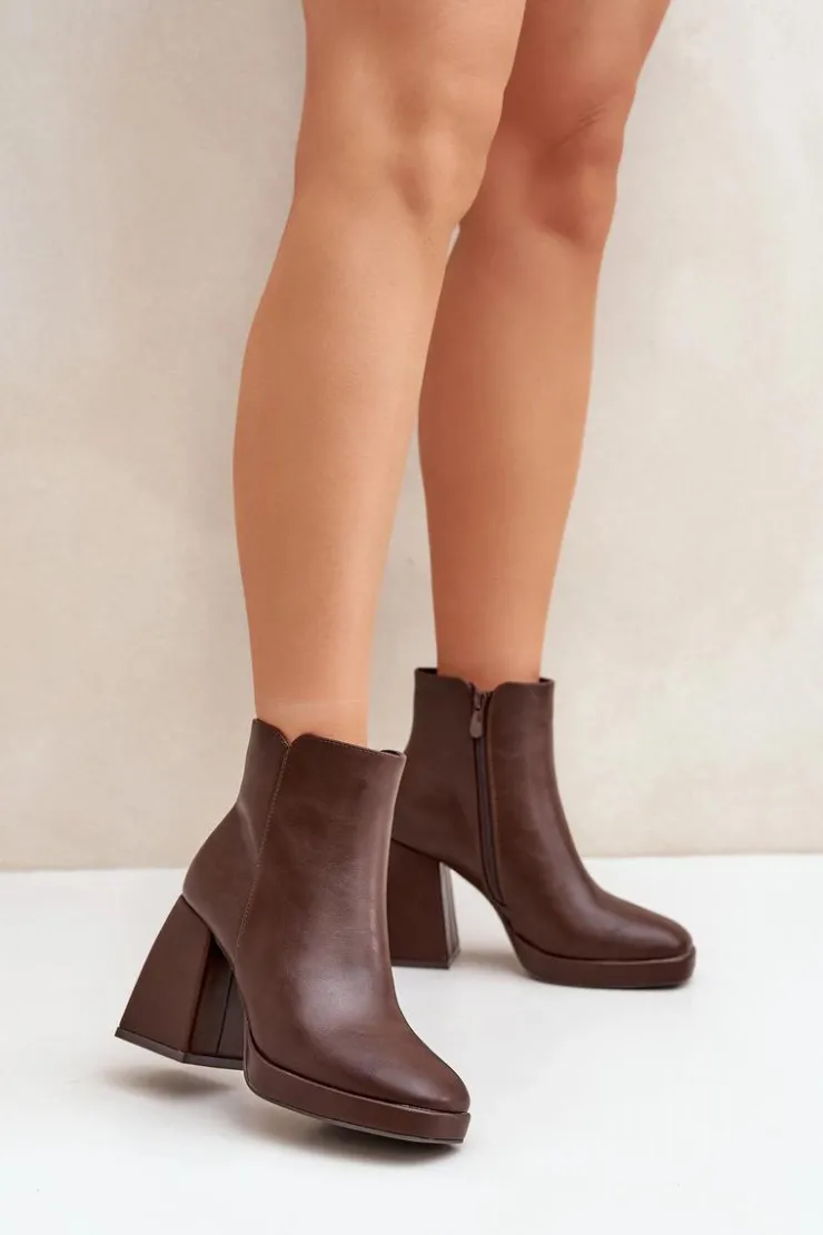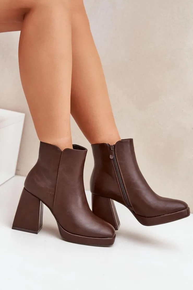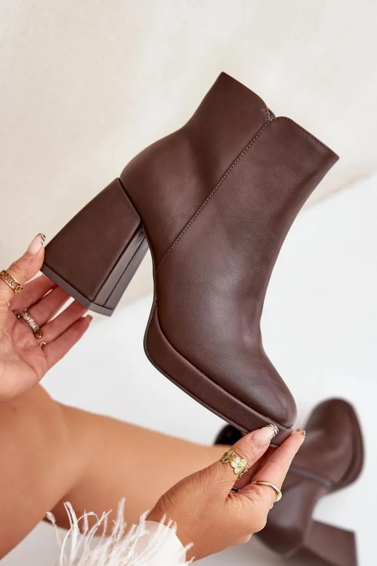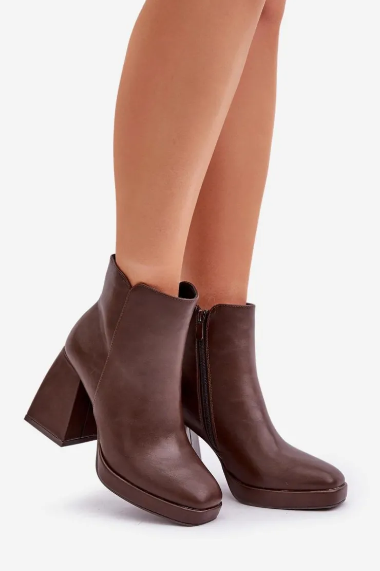 Botki damskie wykonane z eko skóry, osadzone na stabilnym słupkowym obcasie. Zapinane na zamek dla wygody użytkowania. Wnętrze ocieplane, co zapewnia komfort i ciepło w chłodniejsze dni. Uniwersalny model, który świetnie sprawdzi się w codziennych stylizacjach. Przy wyborze rozmiaru prosimy sugerować się tabelą rozmiarów.
