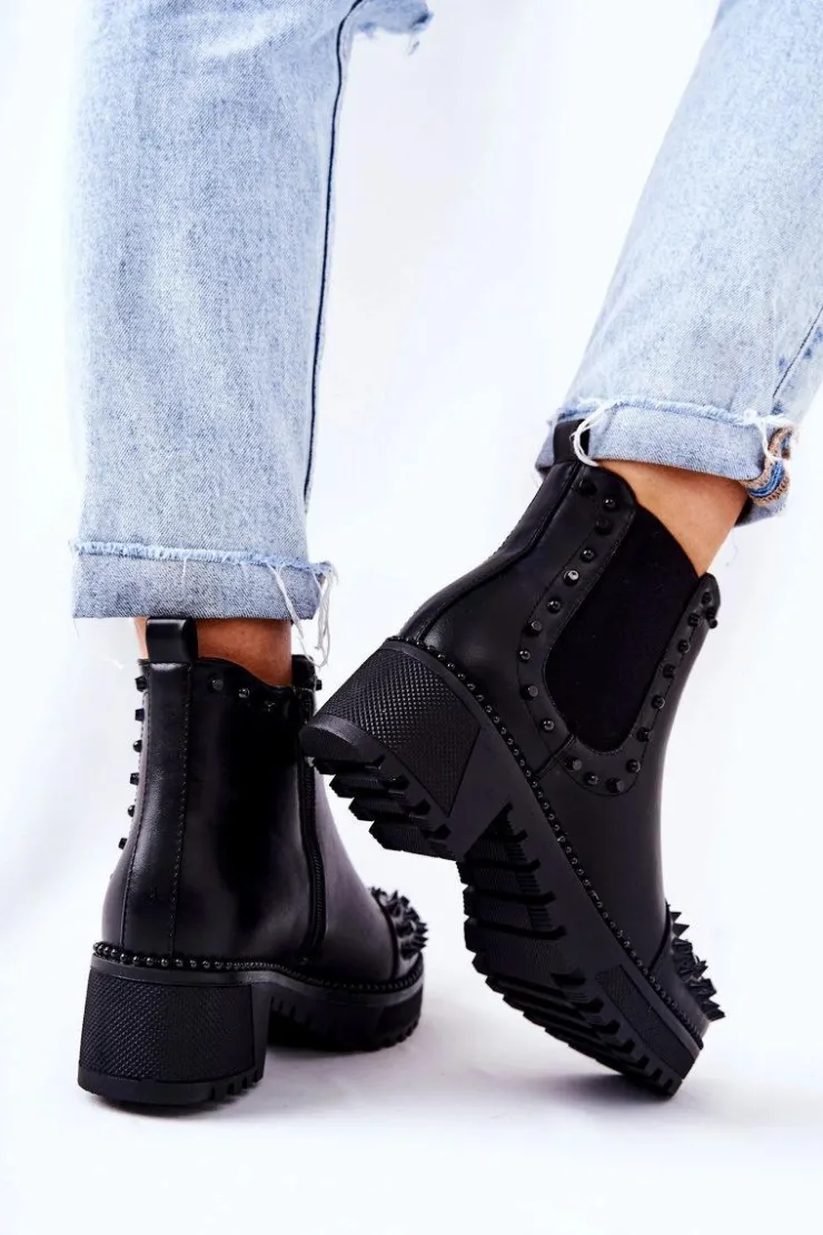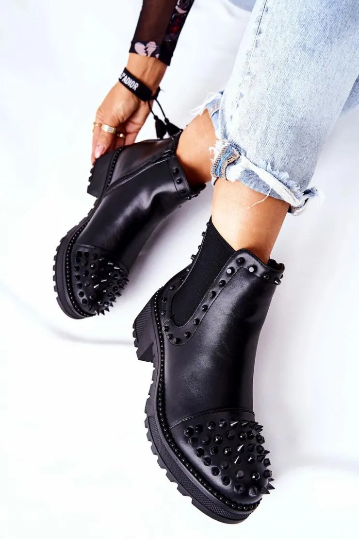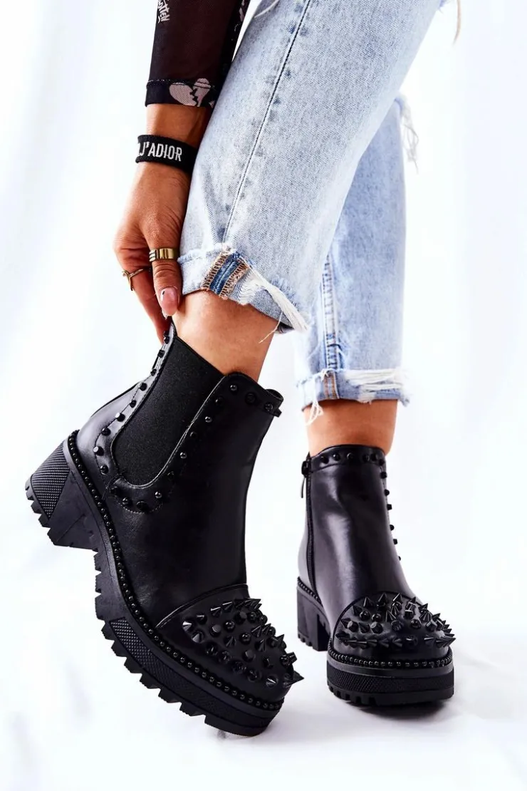 Wyjątkowe botki, które zachwycą niejedną z Was! Zostały wykonane z ekologicznej skóry. Posiadają ozdobne dżety na przodzie, które dodają butom charakteru. Zapinane na suwak. Obcas w postaci masywnego słupka oraz platforma zapewnią stabilność. Nie czekaj aż znikną i kup już dziś! Przy wyborze rozmiaru prosimy sugerować się tabelą rozmiarów.