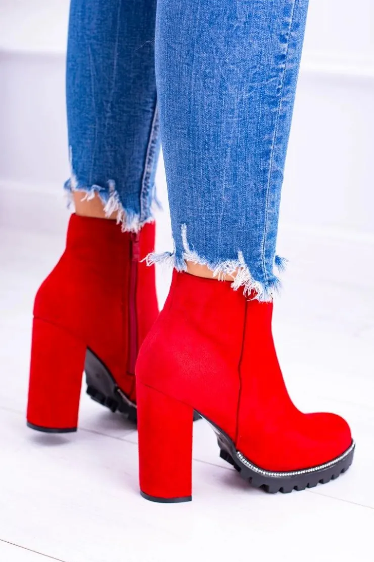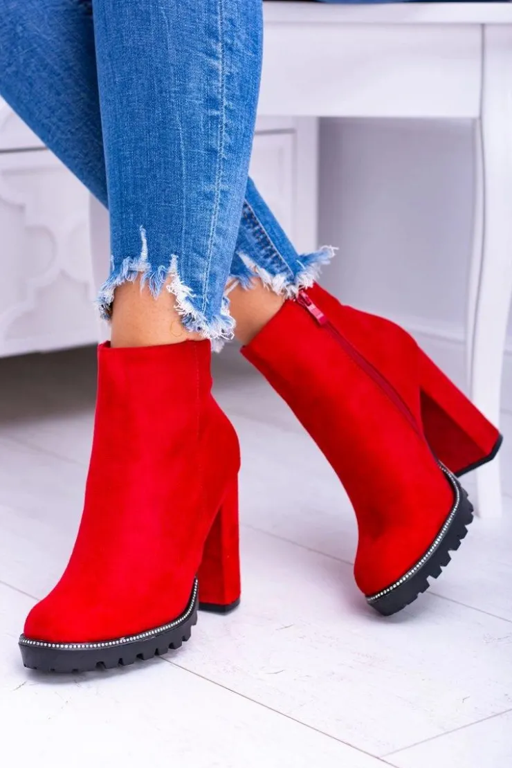 Boto Botki Na Słupku|Czarne Botki*Czerwone botki na słupku Guriela Suede