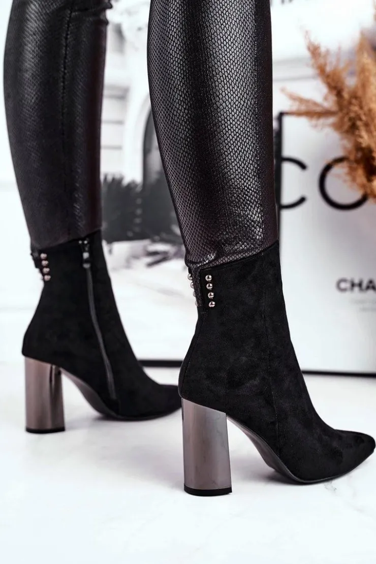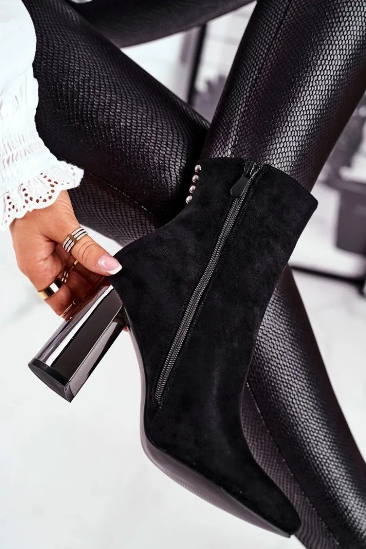 Boto Botki Na Słupku|Czarne Botki*Damskie Botki Na Słupku Czarne Trens